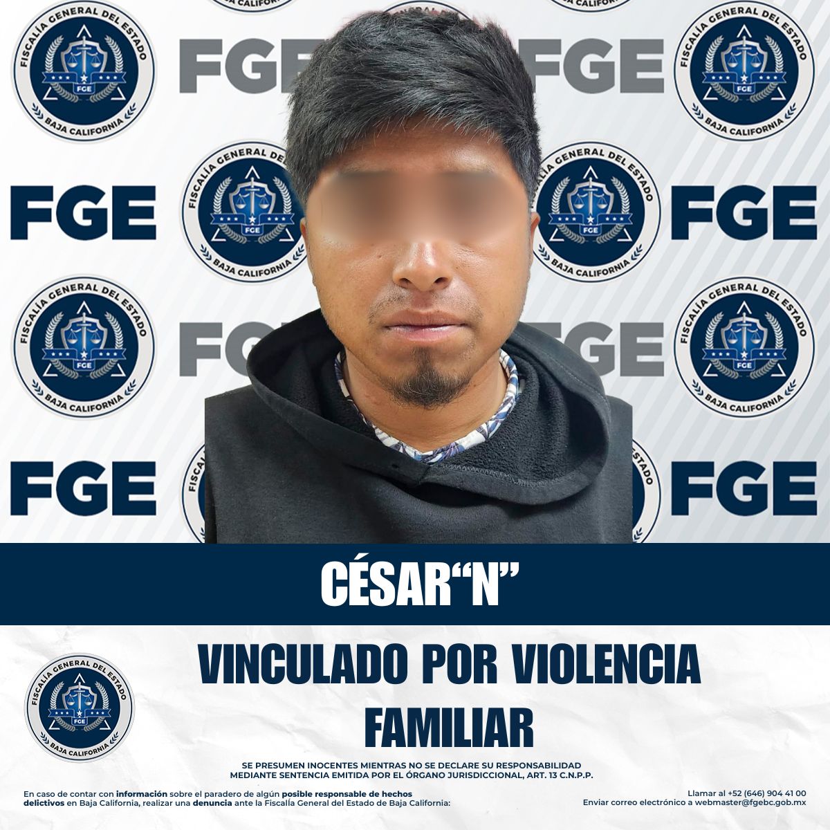 SAN QUINTÍN, BAJA CALIFORNIA. - La Fiscalía Regional de San Quintín, a través de la Unidad de Investigación, logró que César “N” fuera vinculado a proceso por el delito de violencia familiar, tras ser detenido en flagrancia.