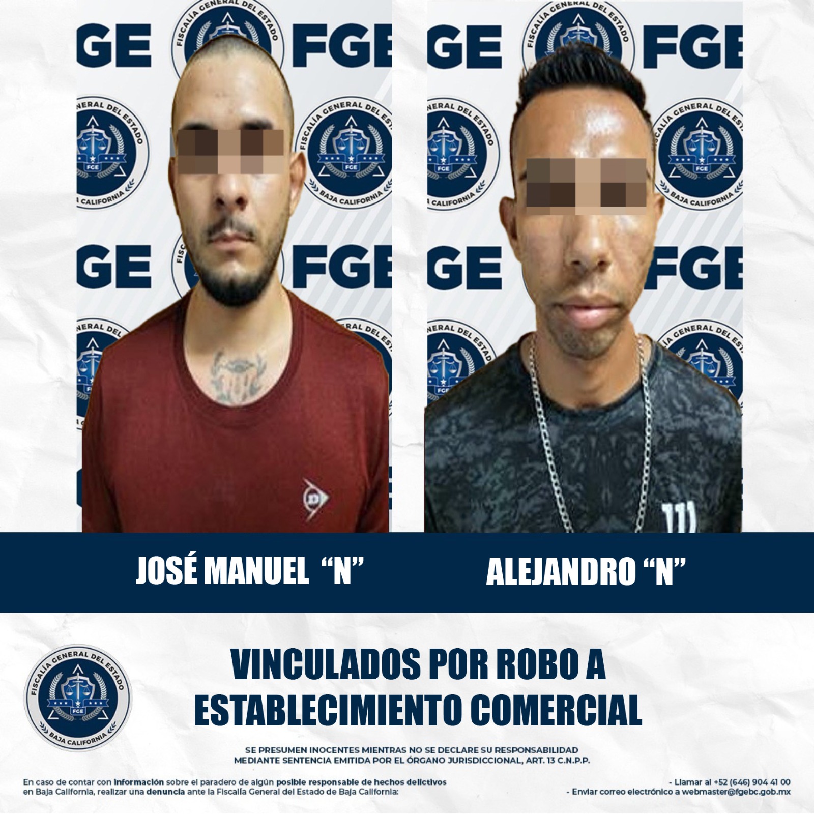 MEXICALI, BAJA CALIFORNIA. - Después de presentar una carpeta de investigación con elementos sólidos, la Fiscalía Regional de Mexicali obtuvo el auto de vinculación a proceso en contra de dos hombres acusados por el delito de robo calificado a establecimiento comercial abierto al público.