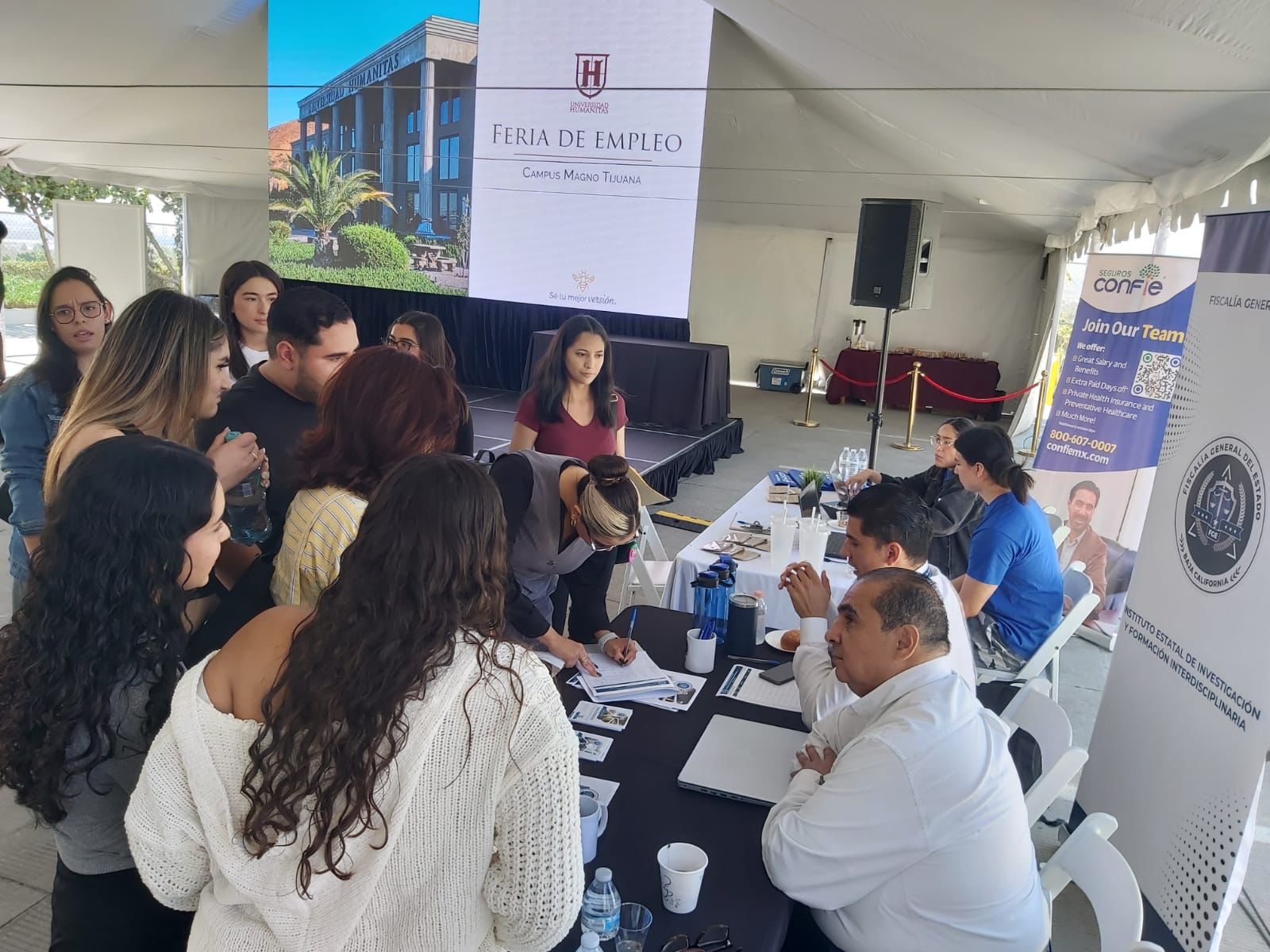TIJUANA, BAJA CALIFORNIA. - La Fiscalía General del Estado, bajo la directriz de la Dra. Ma. Elena Andrade Ramírez, continúa impulsando su compromiso de mantener una cercanía con las juventudes de Baja California, con el objetivo de fomentar su desarrollo profesional y laboral. En el marco de este esfuerzo, el programa Fiscal Enlace Contigo acudió el 19 de agosto a la Universidad Humanitas para participar en la Feria del Empleo, junto al Instituto Estatal de Investigación y Formación Interdisciplinaria (IEIFI), donde se brindó a la comunidad estudiantil valiosa información sobre las oportunidades de trabajo en la Fiscalía General del Estado.