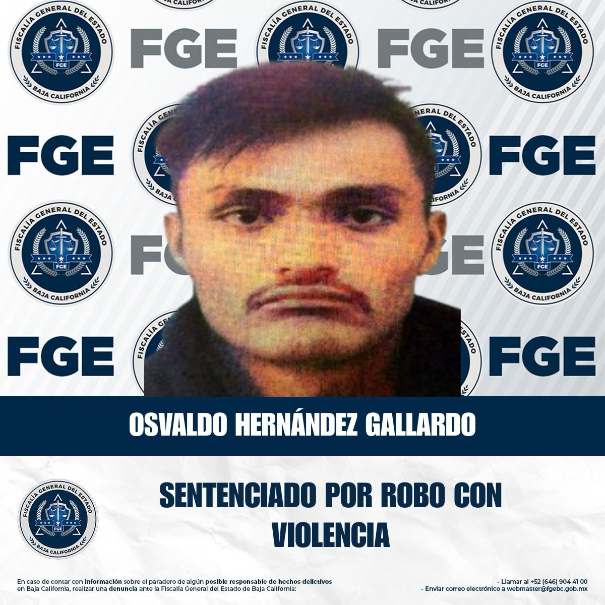 TIJUANA, BAJA CALIFORNIA. - La Unidad de Investigación de Robos, Zona Centro, adscrita a la Fiscalía Regional de Tijuana, obtuvo sentencia condenatoria en contra de Osvaldo Hernández Gallardo por el delito de robo con violencia.
