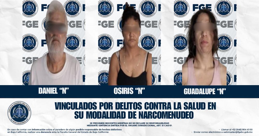 ENSENADA, BAJA CALIFORNIA. - La Fiscalía General del Estado, a través de la Fiscalía Especializada en Narcomenudeo, obtuvo la vinculación a proceso de tres personas por delitos contra la salud en la modalidad de narcomenudeo, tras cumplimentar una orden de cateo en la colonia Luis Echeverría, en Ensenada.