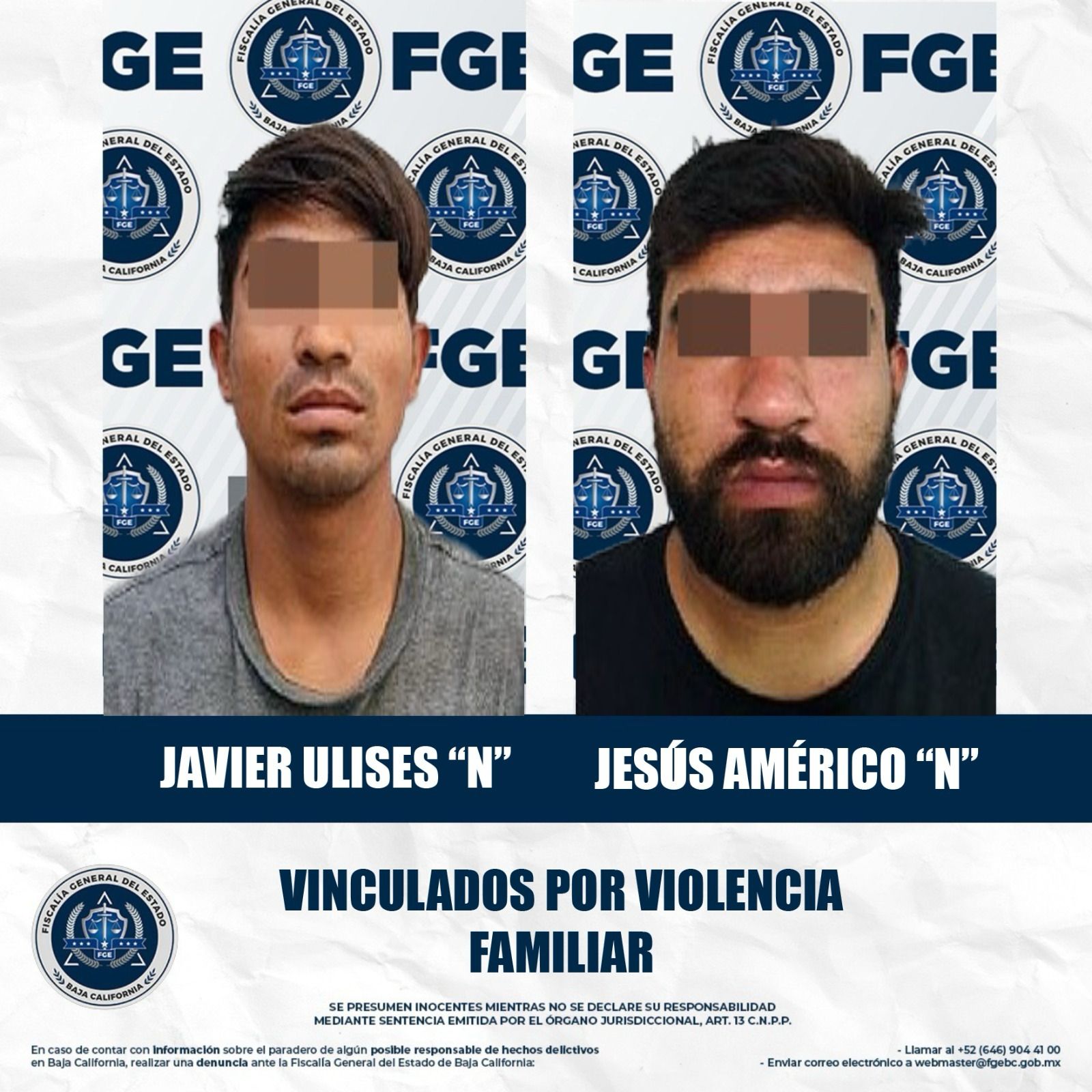 MEXICALI, BAJA CALIFORNIA. - La Fiscalía Regional de Mexicali, a través de las unidades de Investigación de Delitos con Detenidos Poniente y Detenidos Oriente, obtuvo la vinculación a proceso de dos hombres imputados por el delito violencia familiar.