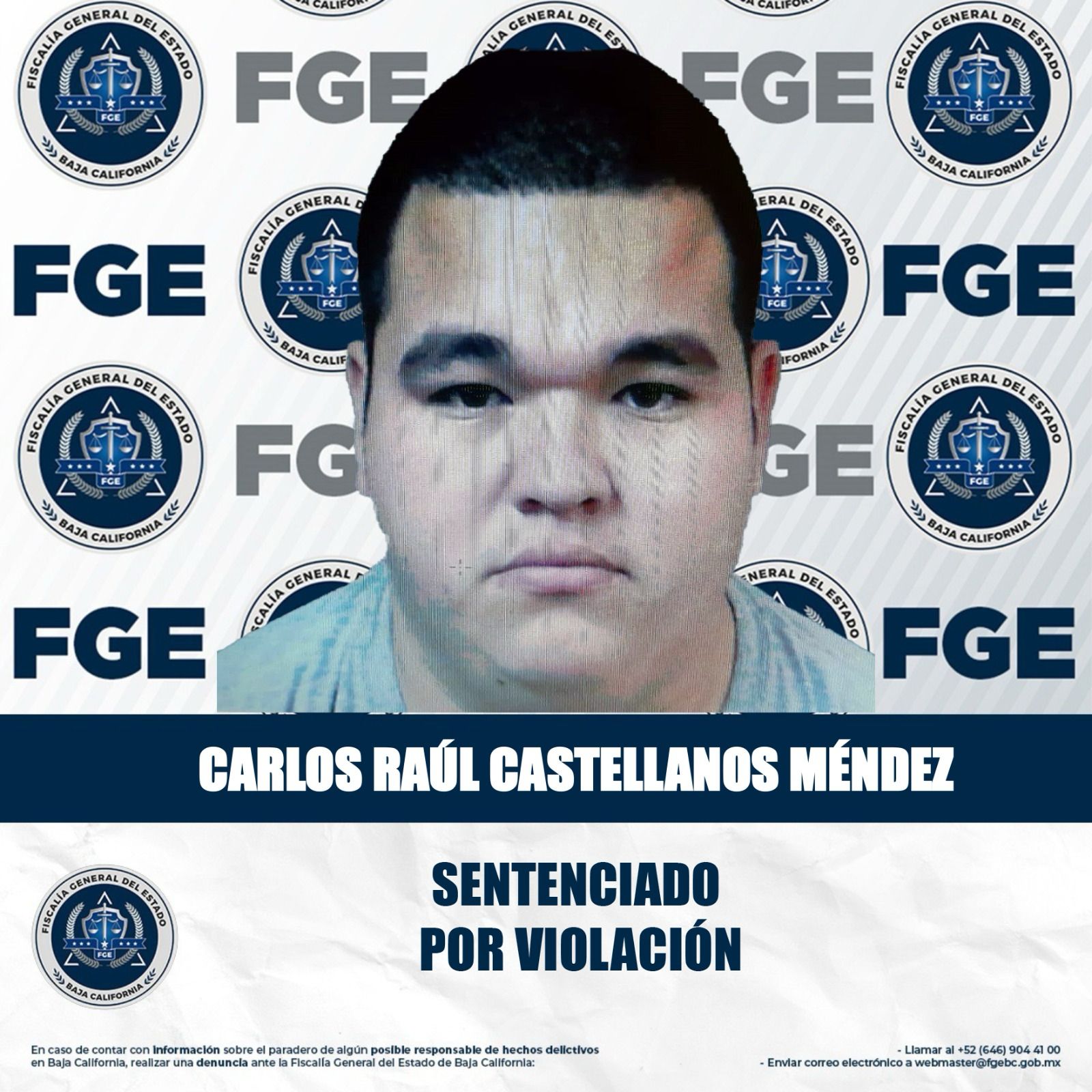 MEXICALI, BAJA CALIFORNIA. - La Fiscalía General del Estado (FGE), a través de la Fiscalía Especializada en Delitos Contra la Mujer por Razón de Género, obtuvo una sentencia condenatoria de ocho años de prisión en contra de Carlos Raúl Castellanos Méndez, responsable del delito de violación.