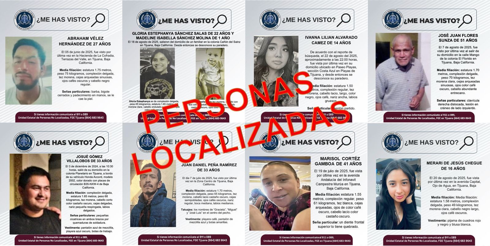 TIJUANA, BAJA CALIFORNIA. - Agentes Estatales de Investigación localizaron a nueve personas que habían sido reportadas como desaparecidas, todas fueron encontradas con buen estado de salud.