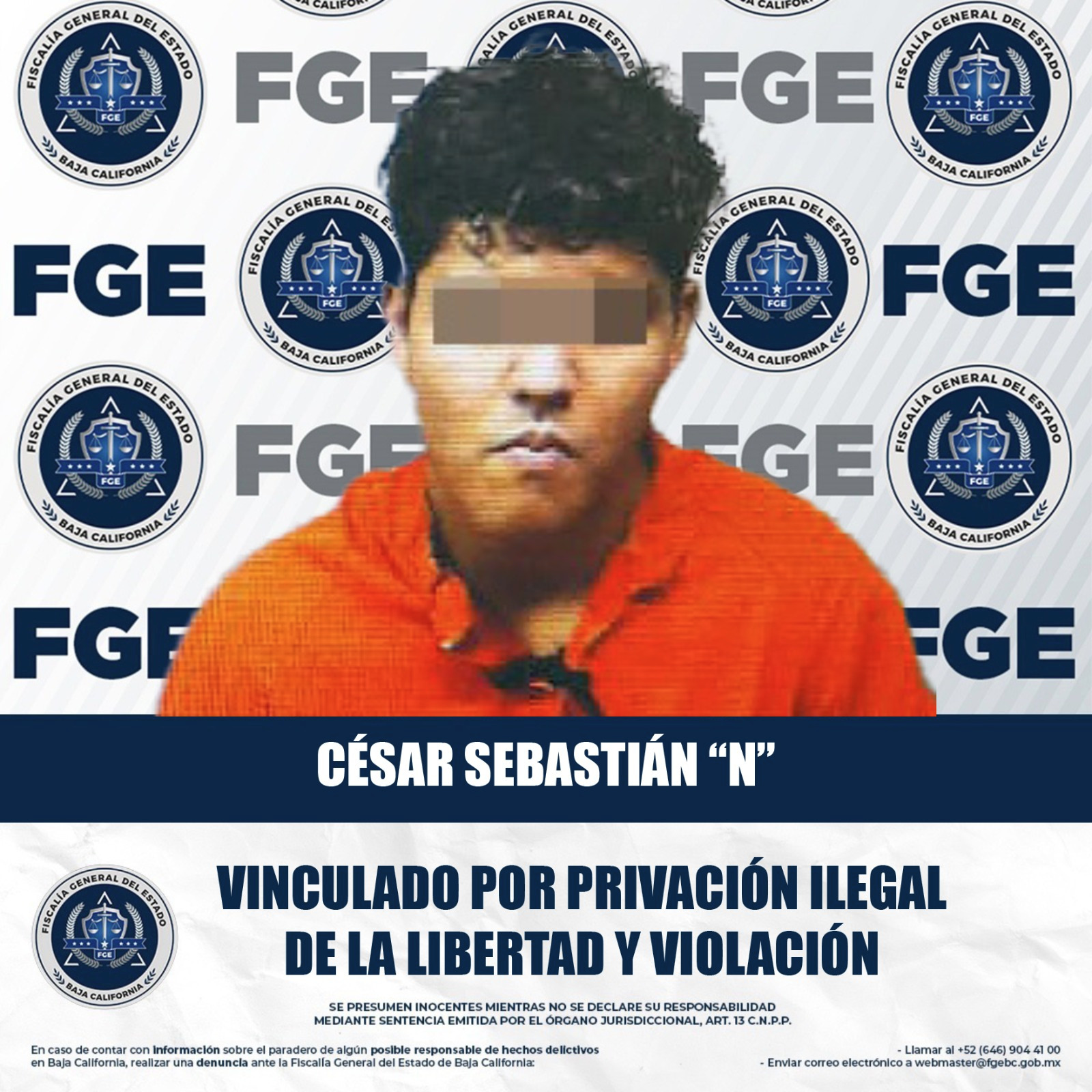 MEXICALI, BAJA CALIFORNIA. - La Fiscalía General del Estado, a través de la Fiscalía Especializada en Delitos Contra la Mujer por Razón de Género, obtuvo la vinculación a proceso de un individuo por los delitos de privación ilegal de la libertad agravada y violación.