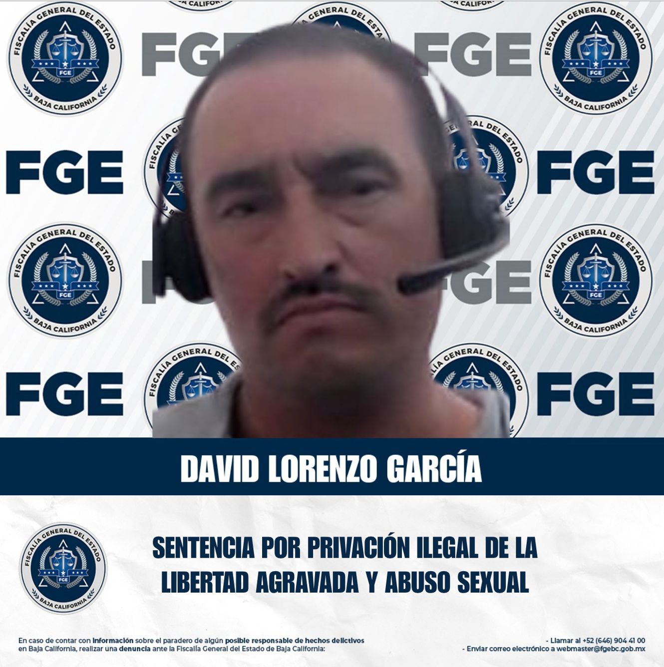 PLAYAS DE ROSARITO, BAJA CALIFORNIA. - La Fiscalía Especializada en Delitos Contra Mujeres por Razón de Género obtuvo una sentencia condenatoria en contra de David Lorenzo García, tras un procedimiento abreviado en el que se determinó su responsabilidad por los delitos de privación ilegal de la libertad agravada y abuso sexual.