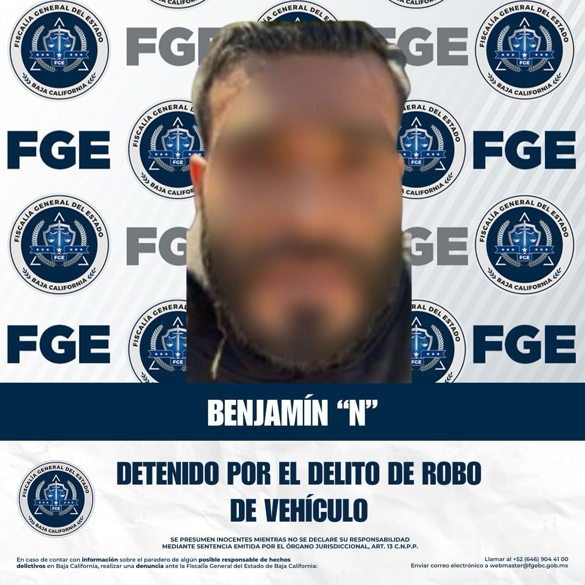 Fiscalía General Del Estado De Baja California asegura a sujeto implicado en robo de vehículo en Tijuana