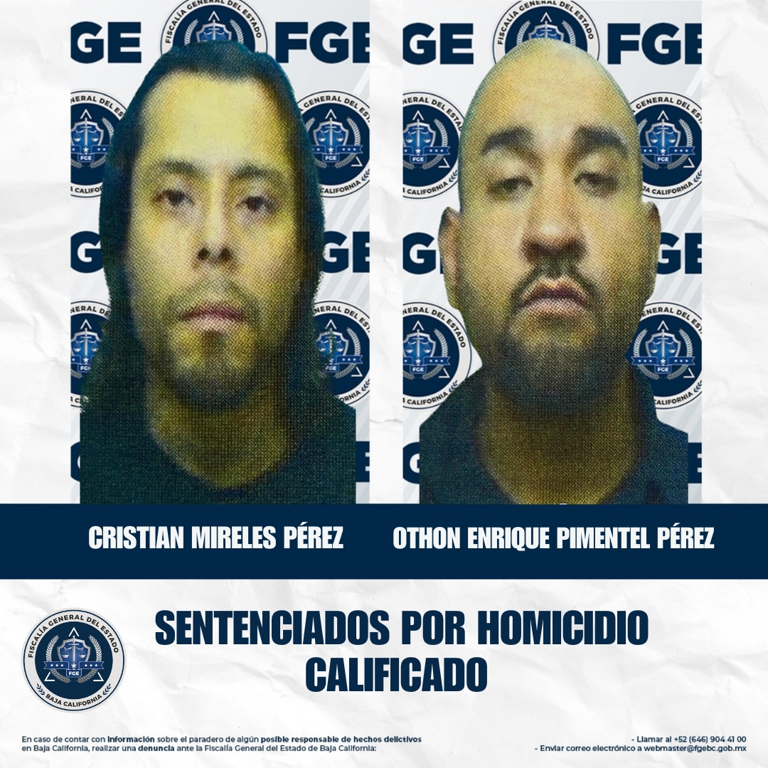 ENSENADA, BAJA CALIFORNIA. - La Fiscalía Regional de Ensenada, a través de la Coordinación de Averiguaciones Previas y Control de Procesos, logró sentencia condenatoria contra dos hombres responsables de un homicidio calificado.