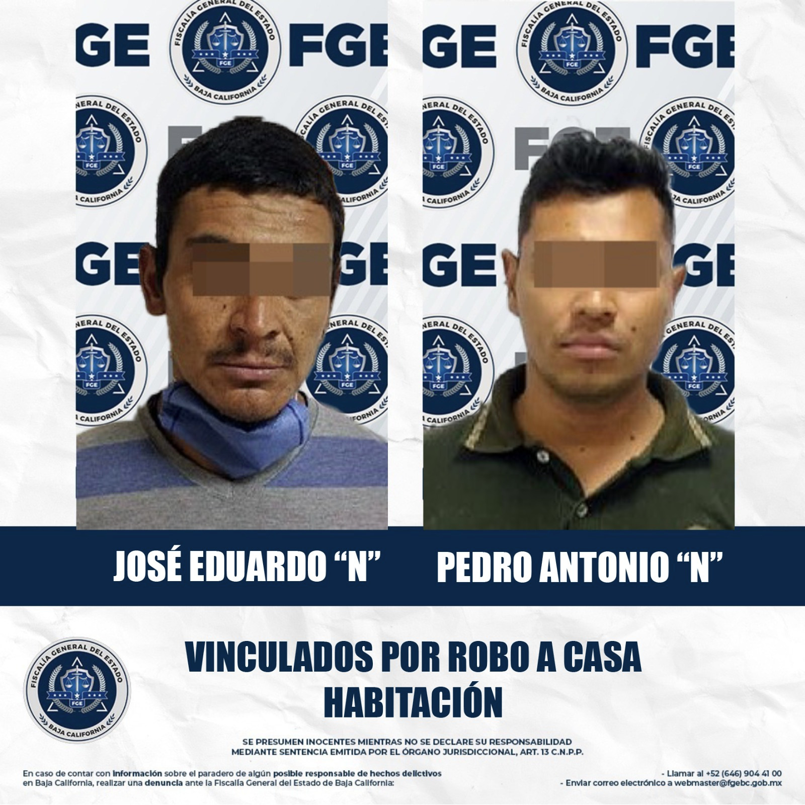 MEXICALI, BAJA CALIFORNIA. - La Fiscalía Regional de Mexicali obtuvo la vinculación a proceso de José Eduardo “N” y Pedro Antonio “N”, acusados del delito de robo calificado a casa habitación, en audiencias celebradas por separado.