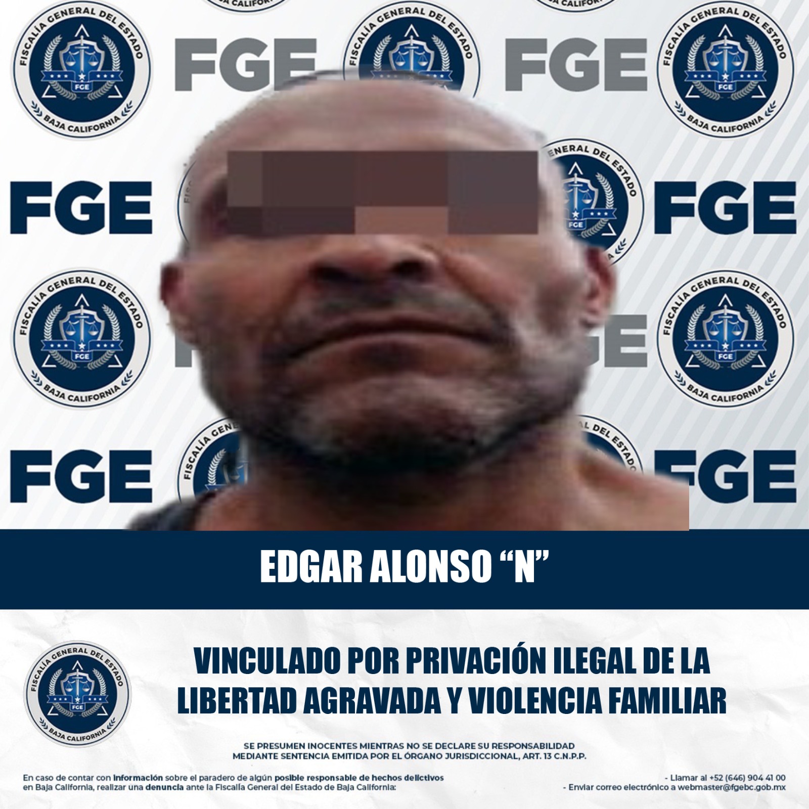 MEXICALI, BAJA CALIFORNIA. - La Fiscalía Regional de Mexicali, a través de la Unidad de Investigación con Detenidos Poniente, obtuvo mediante las pruebas presentadas la vinculación a proceso de Edgar Alonso “N” por los delitos de privación ilegal de la libertad agravada y violencia familiar.