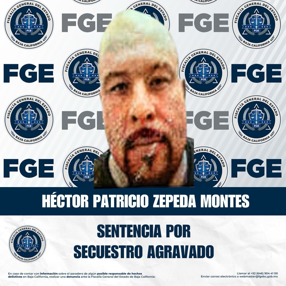 TIJUANA, BAJA CALIFORNIA. - La Fiscalía Regional de Tijuana, a través de la Coordinación de Averiguaciones Previas y Control de Procesos, obtuvo sentencia condenatoria en contra de Héctor Patricio Zepeda Montes, alias “El Chato”, por el delito de secuestro agravado, imponiéndose una pena de 52 años y 4 meses de prisión, así como una multa de 4 mil 205 unidades de medida y actualización.
