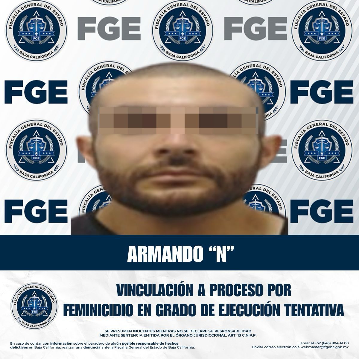 TIJUANA, BAJA CALIFORNIA. - La Unidad de Investigación de Delitos de Violencia Familiar, La Mesa, adscrita a la Fiscalía Regional de Tijuana, logró la vinculación a proceso en contra de Armando “N”, por los delitos de feminicidio en grado de ejecución tentativa, privación ilegal de la libertad agravada y violencia familiar física.