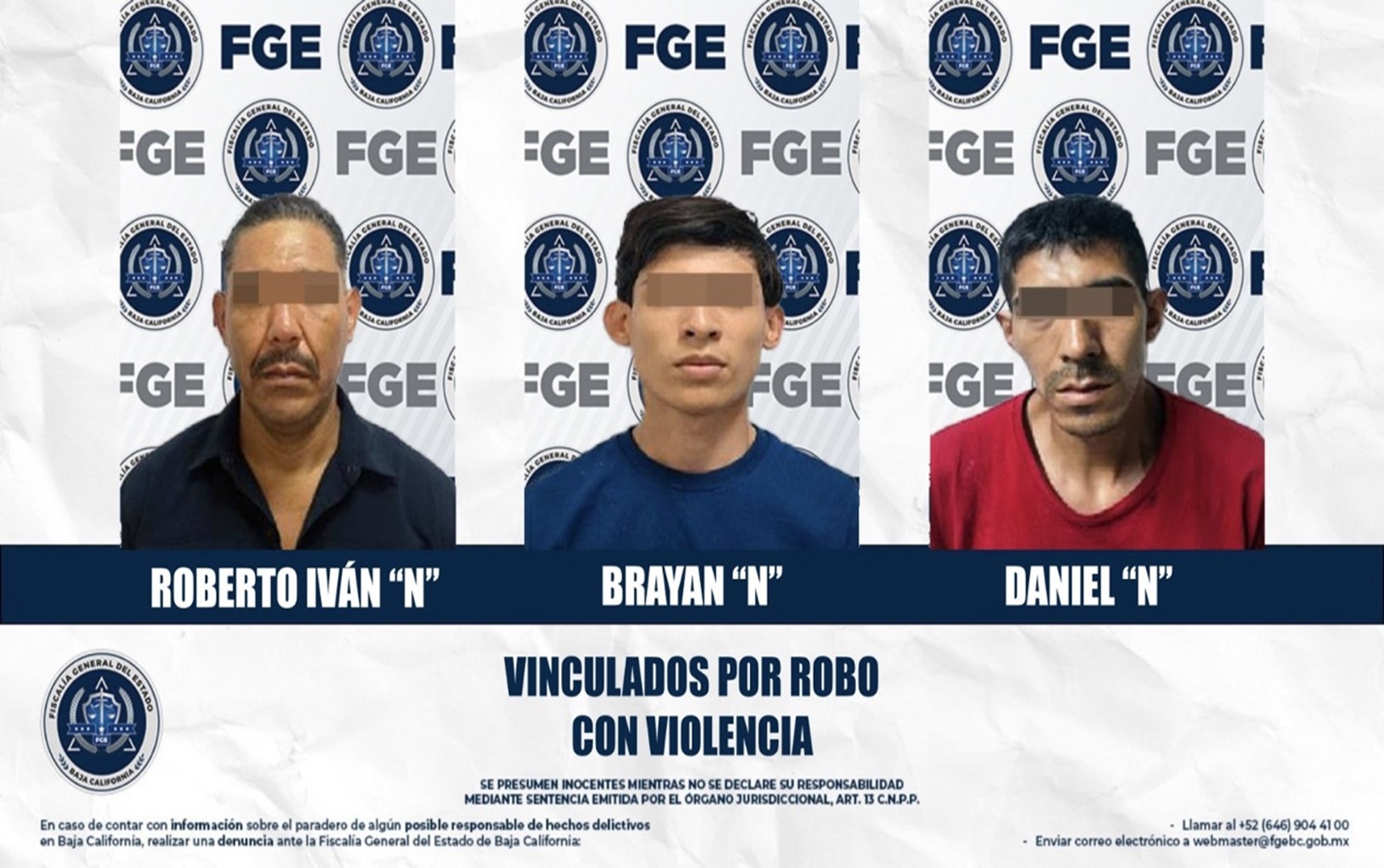 MEXICALI, BAJA CALIFORNIA. - La Fiscalía Regional de Mexicali obtuvo la vinculación a proceso de tres hombres por diversos robos cometidos con violencia en establecimientos comerciales de la ciudad.