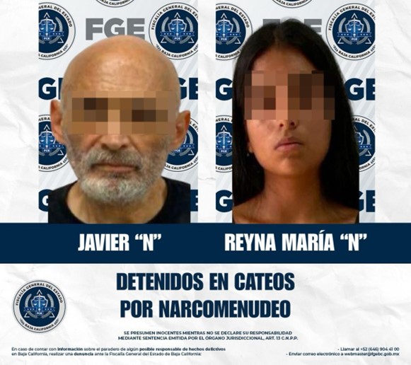 PLAYAS DE ROSARITO, BAJA CALIFORNIA. - La Fiscalía General del Estado, a través de la Fiscalía Especializada en Narcomenudeo, detuvo a dos personas durante cateos como parte de las investigaciones relacionadas con la venta de droga al menudeo en diversas colonias de Playas de Rosarito.