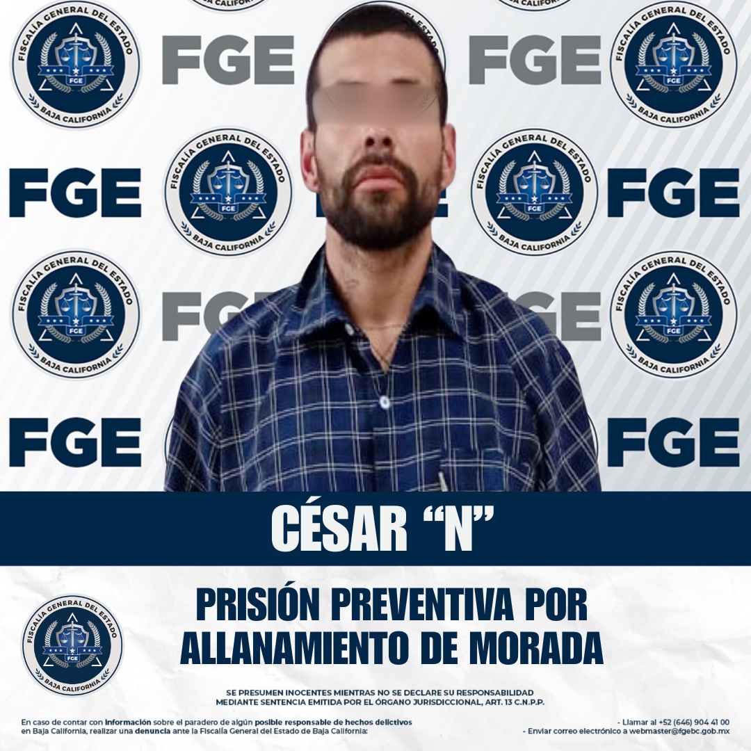ENSENADA, BAJA CALIFORNIA. - La Fiscalía Regional de Ensenada, a través de la Unidad de Investigación con Detenido, vinculó a proceso a César “N” por el delito de allanamiento de morada.