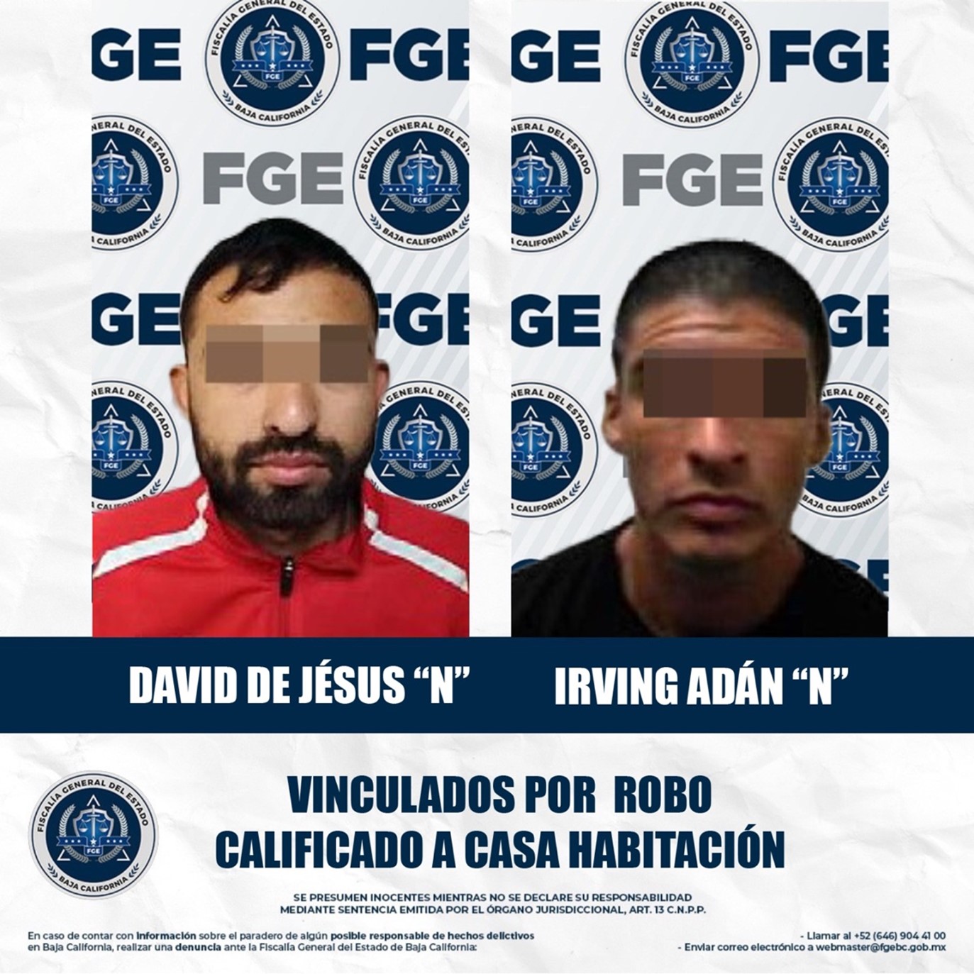 MEXICALI, BAJA CALIFORNIA. - Dos hombres relacionados con robos a casas habitación fueron vinculados a proceso, gracias al trabajo realizado por la Fiscalía Regional de Mexicali, a través de las Unidades de Investigación de Robo Oriente y Detenidos Poniente.