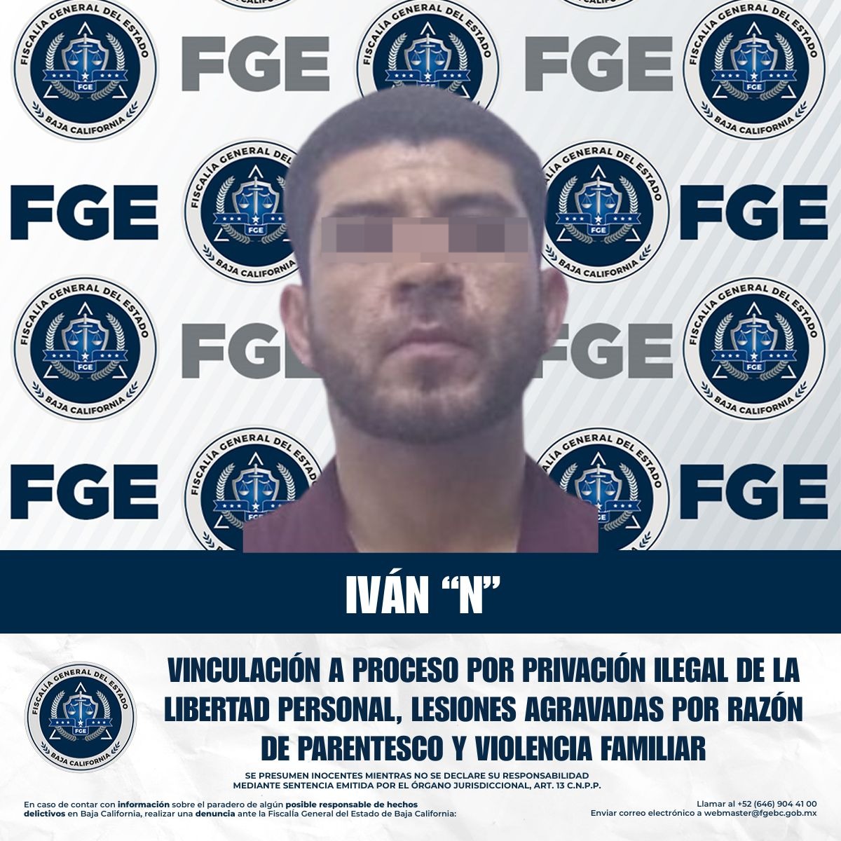 TIJUANA, BAJA CALIFORNIA. - La Unidad de Investigación con Detenido, adscrita a la Fiscalía Regional de Tijuana, obtuvo la medida cautelar de prisión preventiva justificada en contra de Iván “N” por los delitos de privación ilegal de la libertad personal, lesiones agravadas por razón de parentesco y violencia familiar.