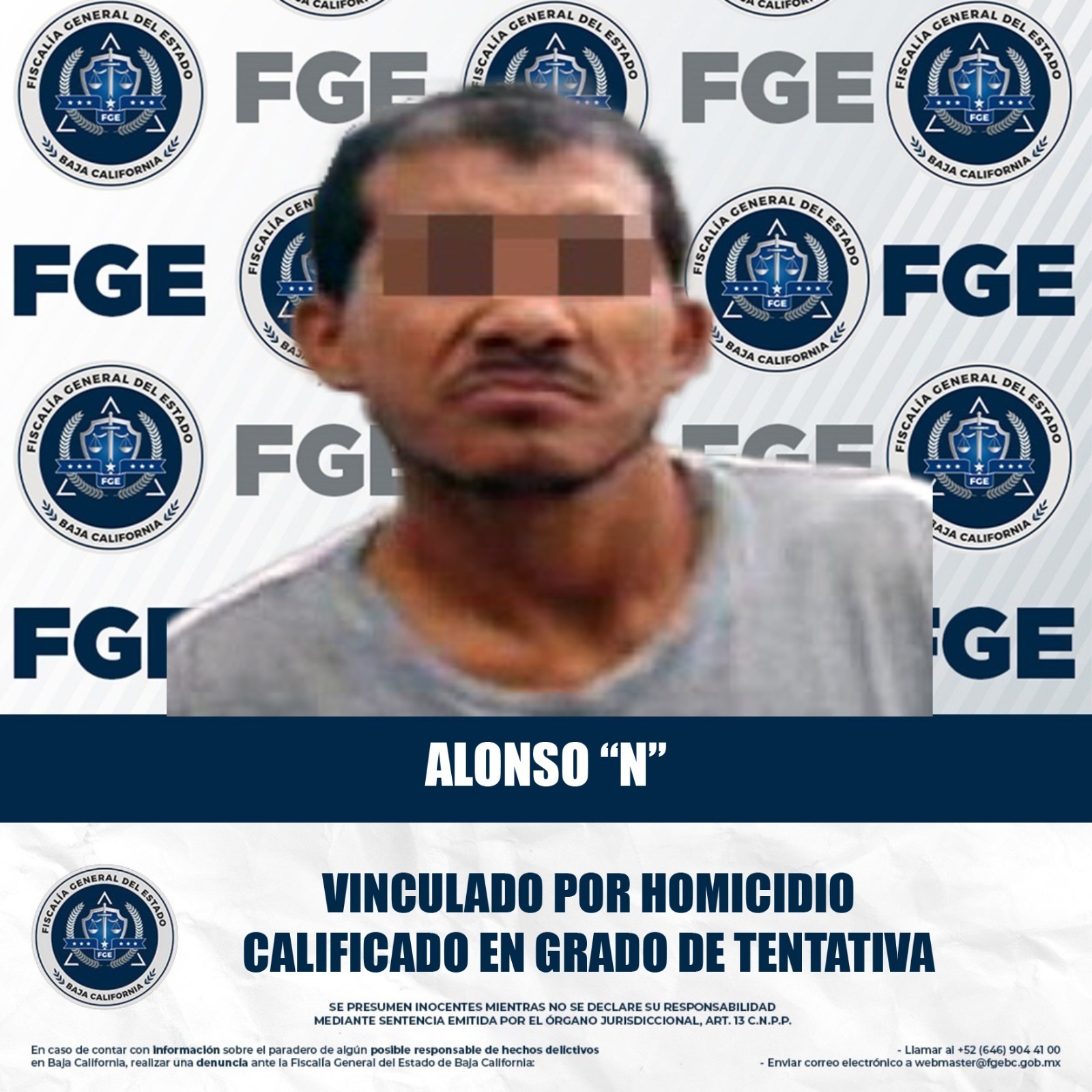 MEXICALI, BAJA CALIFORNIA. - La Fiscalía Regional de Mexicali, a través de la Unidad de Investigación de Delitos con Detenidos Poniente, obtuvo la vinculación a proceso de un hombre imputado por el delito de homicidio calificado en grado de tentativa.
