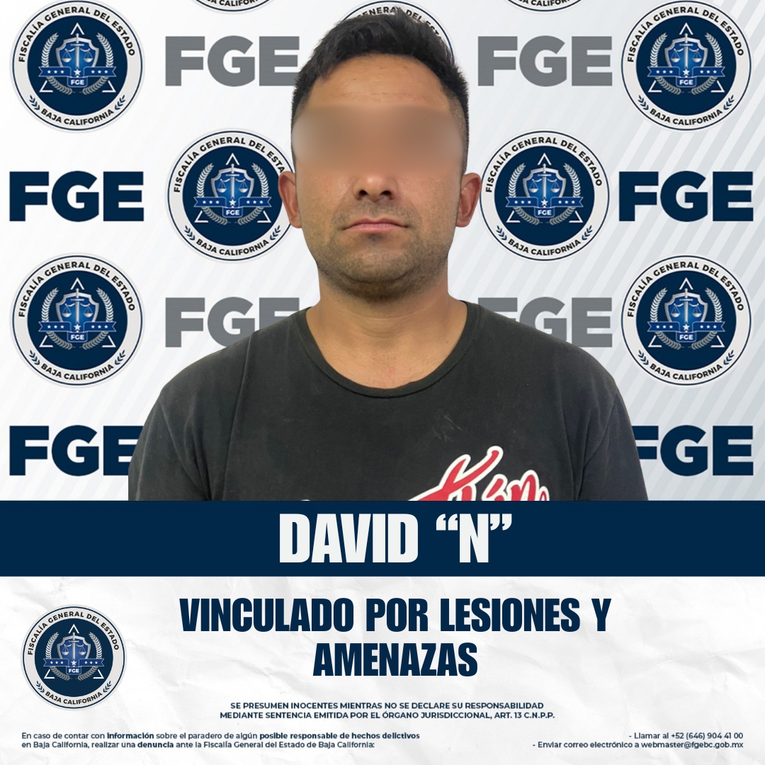 SAN QUINTÍN, BAJA CALIFORNIA. - La Fiscalía Regional de San Quintín, en coordinación con la Unidad de Investigación, obtuvo la vinculación a proceso de David “N” por los delitos de lesiones y amenazas.