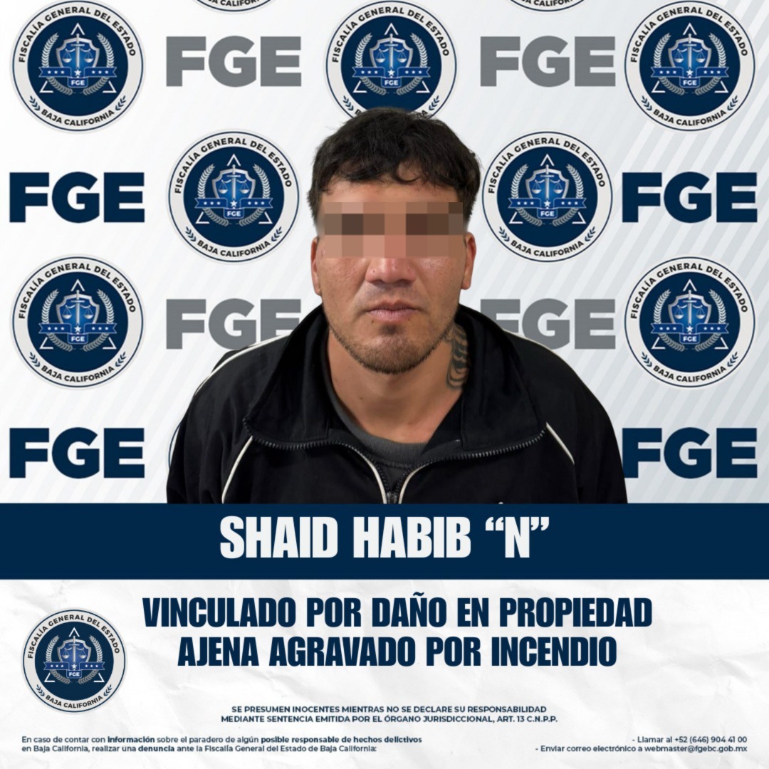 ENSENADA, BAJA CALIFORNIA. - La Fiscalía Regional de Ensenada obtuvo la vinculación a proceso de Shaid Habib “N” por su presunta responsabilidad en el delito de daño en propiedad ajena agravado por incendio ocurrido en la colonia Obrera de esta ciudad.