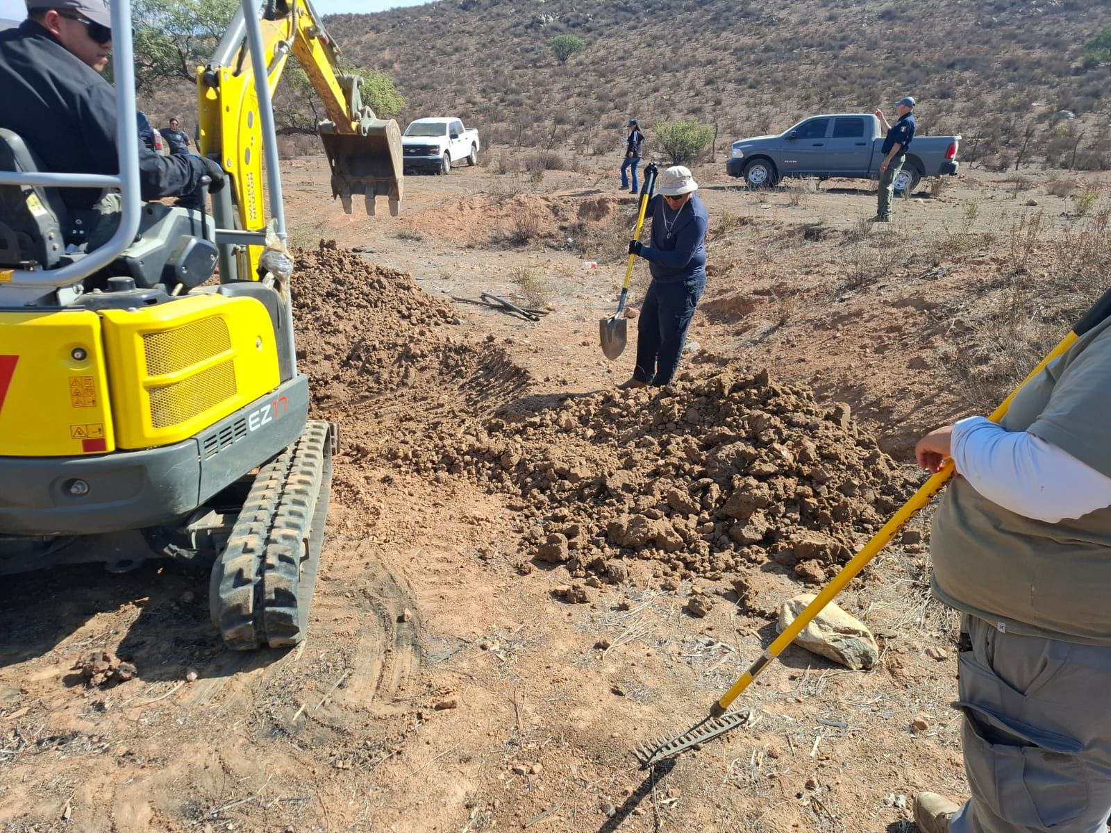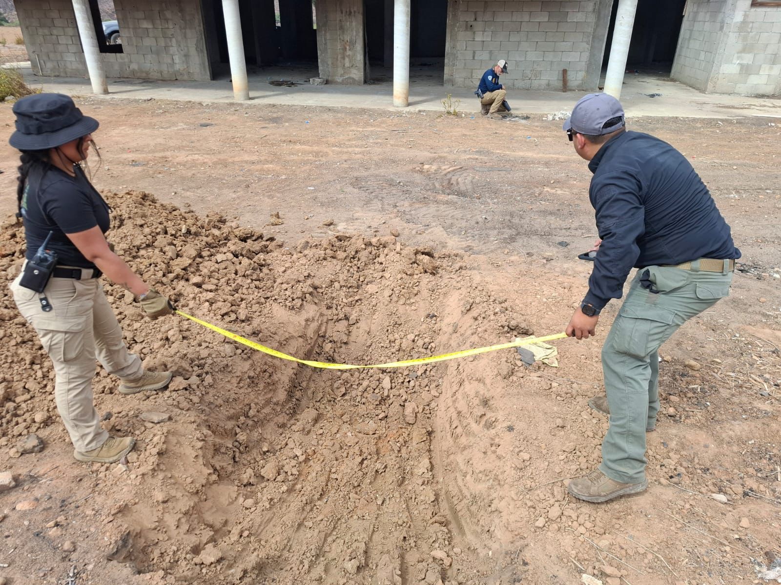 En el lugar, ubicado sobre el arroyo Las Palmas, personal especializado llevó a cabo labores de búsqueda terrestre y excavaciones en distintos puntos del predio, contando con la participación de agentes del Ministerio Público, elementos de la Agencia Estatal de Investigación, personal pericial, binomios caninos, así como apoyo de elementos de la Guardia Nacional, de la Secretaría de la Defensa Nacional y de la Comisión Local de Búsqueda.