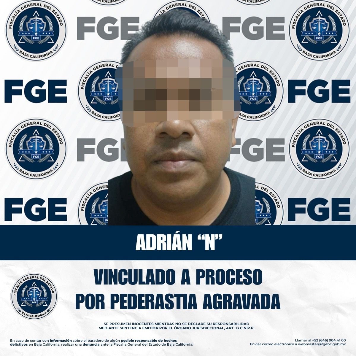 MEXICALI, BAJA CALIFORNIA. - En el firme compromiso de procurar justicia y evitar la impunidad en delitos cometidos contra niñas, niños y personas en situación de vulnerabilidad, la Fiscalía General del Estado (FGE) obtuvo la vinculación a proceso de Adrián “N”, por su presunta responsabilidad en el delito de pederastia agravada.