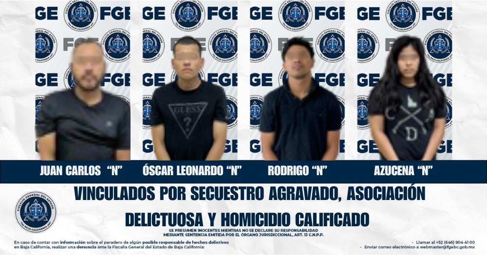 SAN QUINTÍN, BAJA CALIFORNIA. - Bajo el liderazgo de la Dra. Ma. Elena Andrade Ramírez, la Fiscalía General del Estado desarticuló una banda criminal y vinculó a proceso a cuatro personas por secuestro agravado, asociación delictuosa y homicidio calificado en San Quintín.