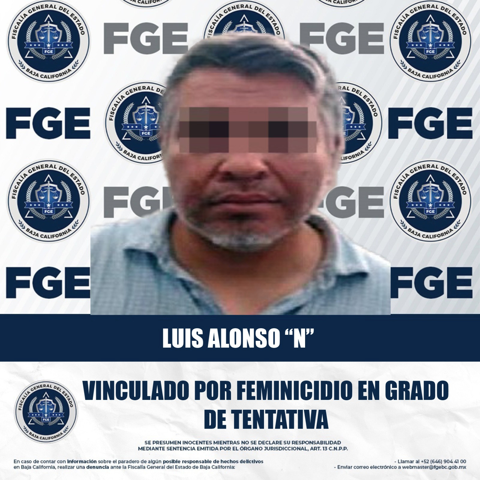 MEXICALI, BAJA CALIFORNIA. - La Fiscalía Regional de Mexicali obtuvo la vinculación a proceso de Luis Alonso “N”, por su presunta responsabilidad en el delito de feminicidio en grado de tentativa, ocurrido el pasado 18 de octubre en la colonia Santo Niño.