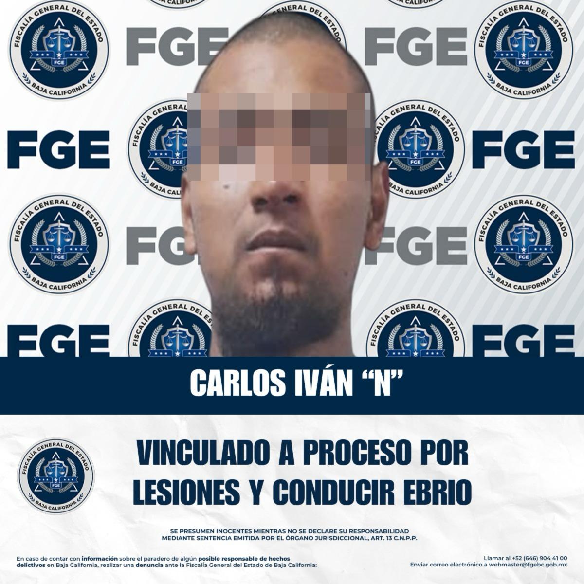 TECATE, BAJA CALIFORNIA. - La Fiscalía Regional de Tecate, a través de la Unidad de Investigación con Detenido, logró presentar ante la autoridad judicial los datos de prueba suficientes y contundentes que permitieron obtener la vinculación a proceso de Carlos Iván “N” por su probable responsabilidad en los delitos de lesiones por culpa y conducción de vehículo de motor en estado de ebriedad.