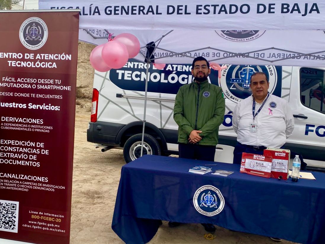 Una de las actividades se realizó en la colonia Terrazas del Valle, en coordinación con el Ayuntamiento de Tijuana, donde la ciudadanía recibió información de utilidad sobre los servicios que brinda la Fiscalía General del Estado y la importancia de la denuncia.