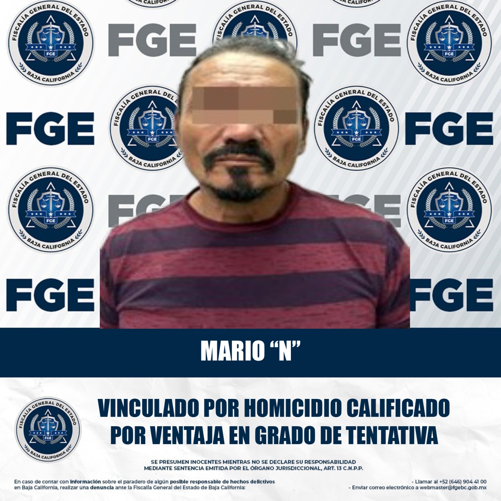 MEXICALI, BAJA CALIFORNIA. - La Fiscalía General del Estado, a través de la Fiscalía Especializada en delitos Contra la Vida, obtuvo la vinculación a proceso y la medida cautelar de prisión preventiva en contra de Mario “N”, acusado de homicidio calificado por ventaja en grado de tentativa.