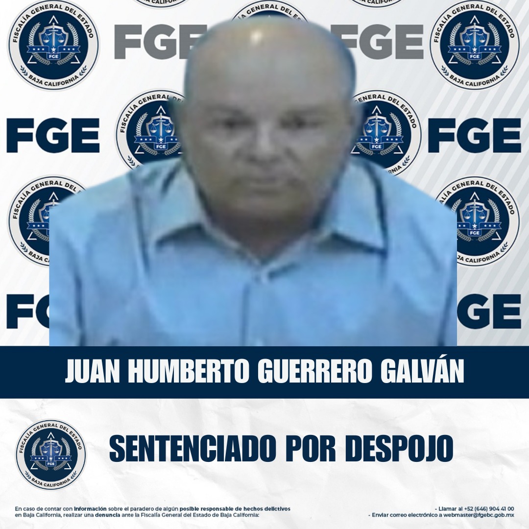 ENSENADA, BAJA CALIFORNIA. - GLa Fiscalía Regional de Ensenada, a través de la Unidad de Investigación de Francisco Zarco, obtuvo una sentencia condenatoria de 3 años y 6 meses de prisión en contra de Juan Humberto Guerrero Galván, por el delito de despojo.