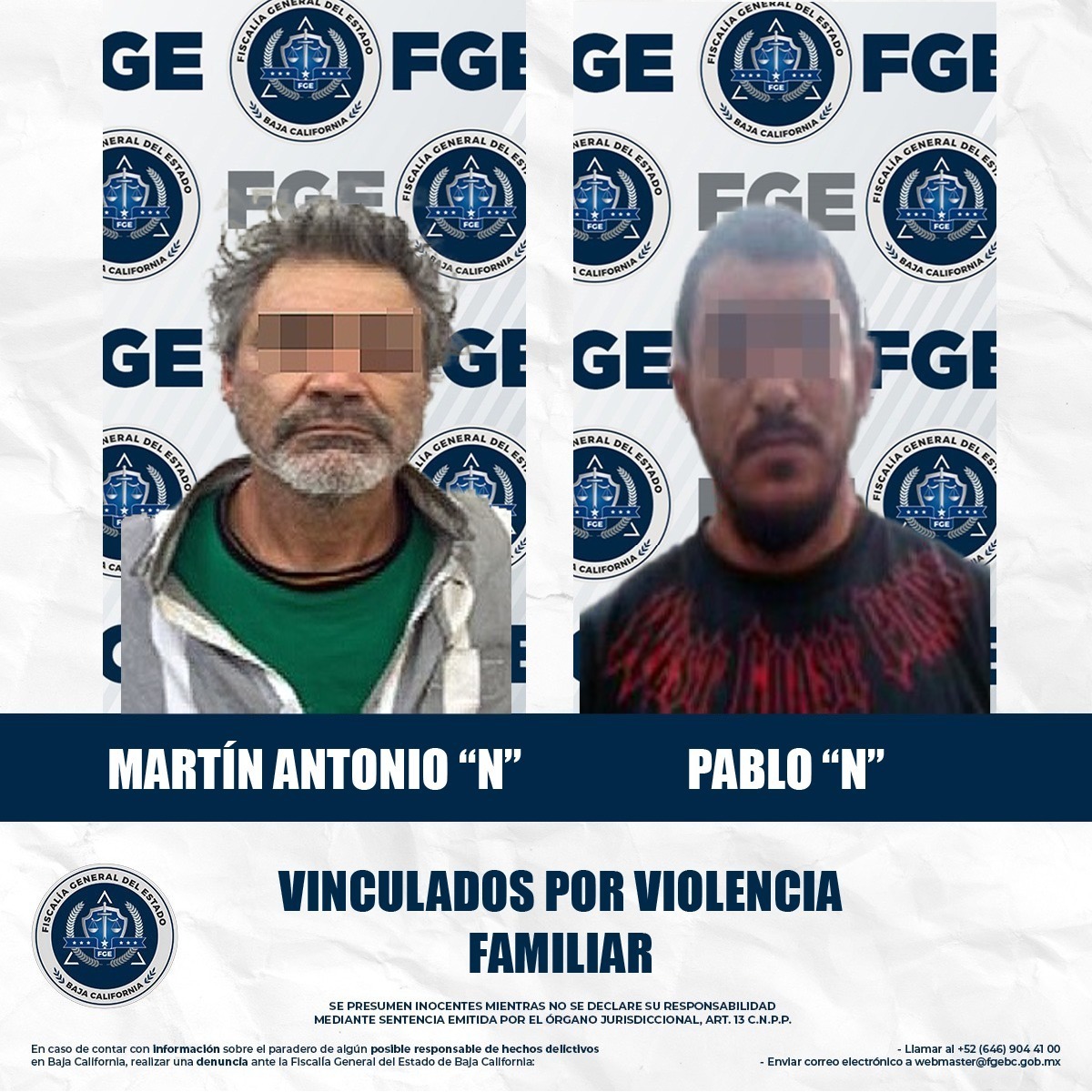 MEXICALI, BAJA CALIFORNIA. - La Fiscalía Regional de Mexicali, a través de la Unidad de Investigación de Delitos con Detenidos Poniente, obtuvo la vinculación a proceso de dos hombres imputados por el delito de violencia familiar.