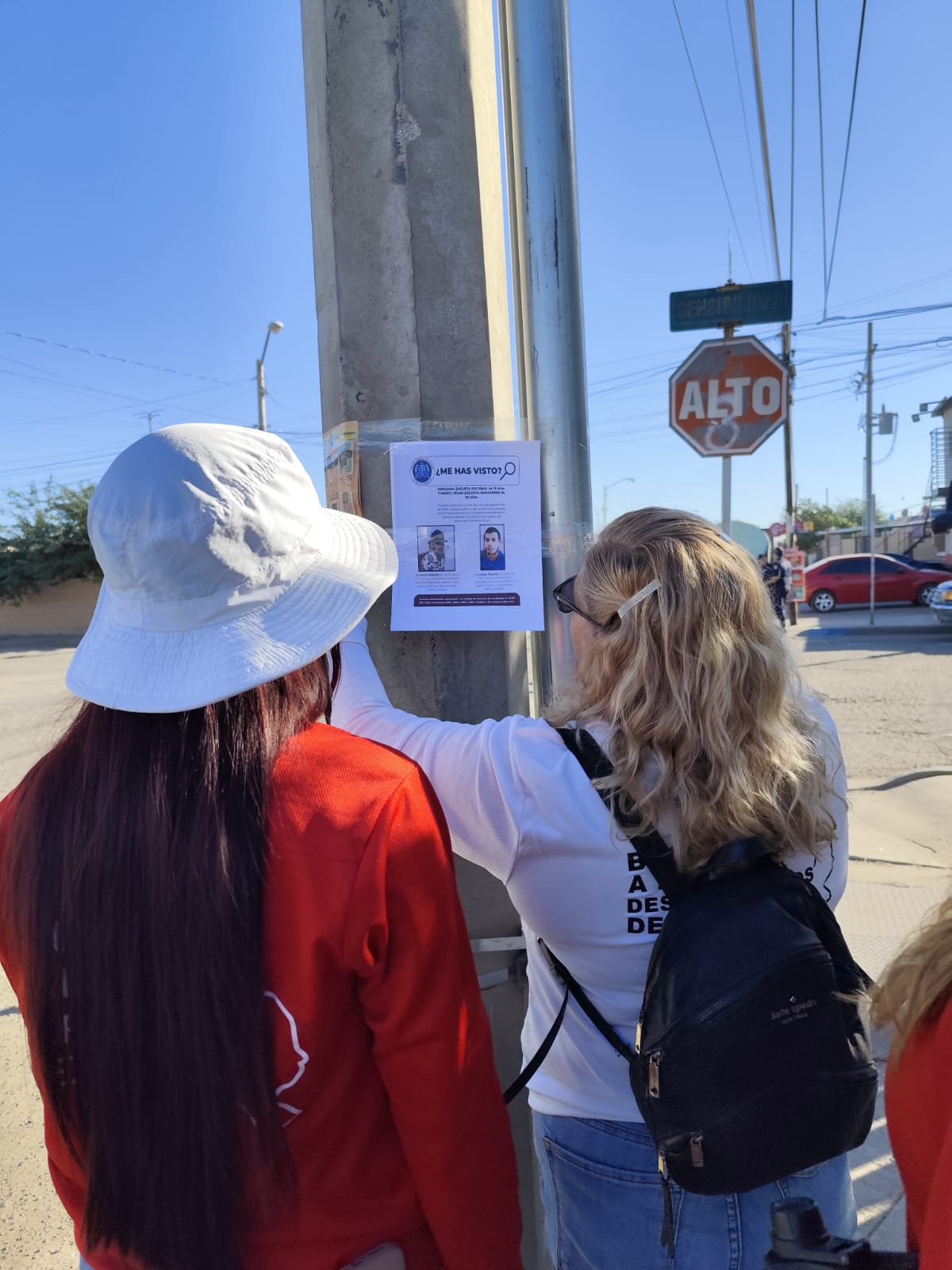 El domingo 9 de noviembre continuaron las acciones de búsqueda en distintos centros de rehabilitación, en zonas específicas como la Plaza del Mariachi, alrededores del fraccionamiento Villa Mediterránea, así como en la avenida Álvaro Obregón, en San Luis Río Colorado, en Sonora. Durante la jornada se distribuyeron volantes informativos en los puntos de mayor afluencia y visibilidad, con el objetivo de fortalecer las acciones de localización.