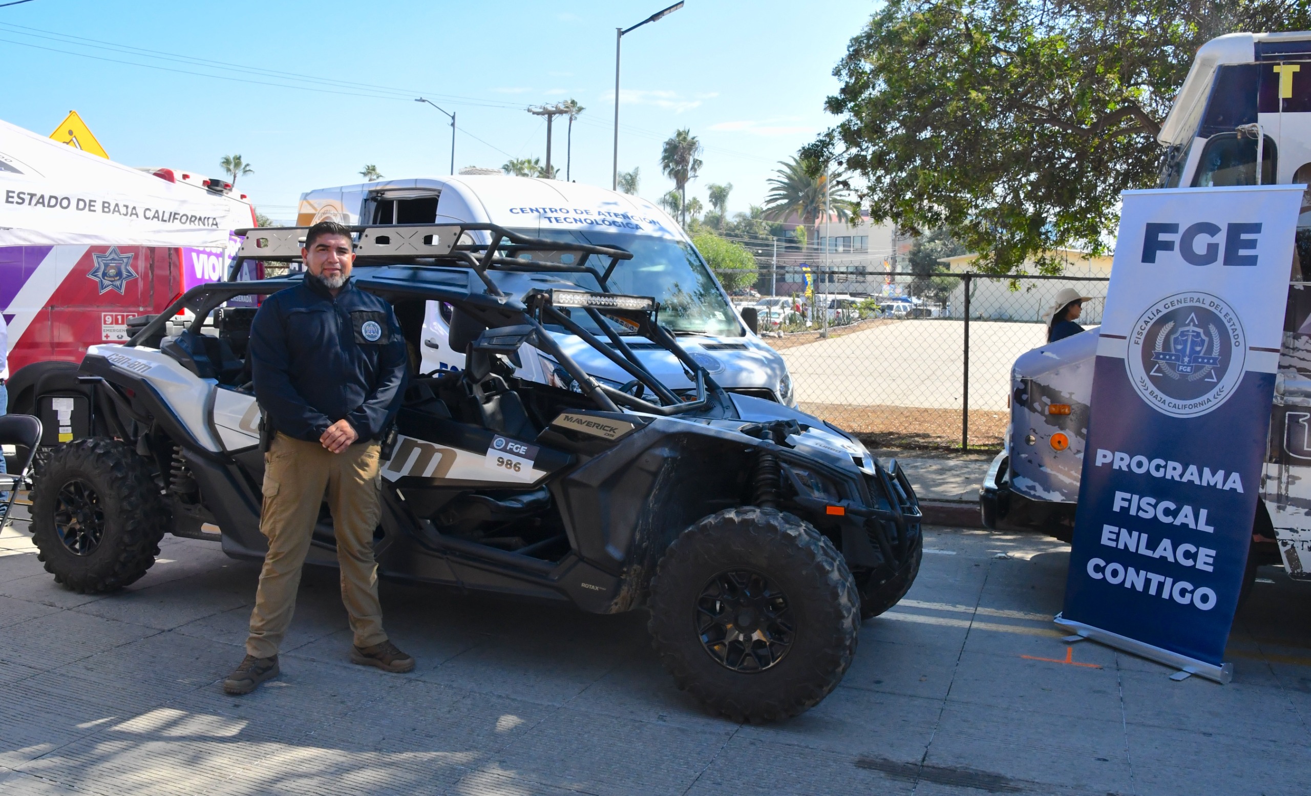 ENSENADA, BAJA CALIFORNIA. - Con el objetivo de fortalecer la atención ciudadana y mantener un contacto directo con la comunidad, la Fiscalía General del Estado (FGE), encabezada por la Dra. Ma. Elena Andrade Ramírez, participó en las actividades realizadas en el marco de actividades de la carrera Baja 1000 mediante la instalación del Centro de Atención Tecnológica (CAT).