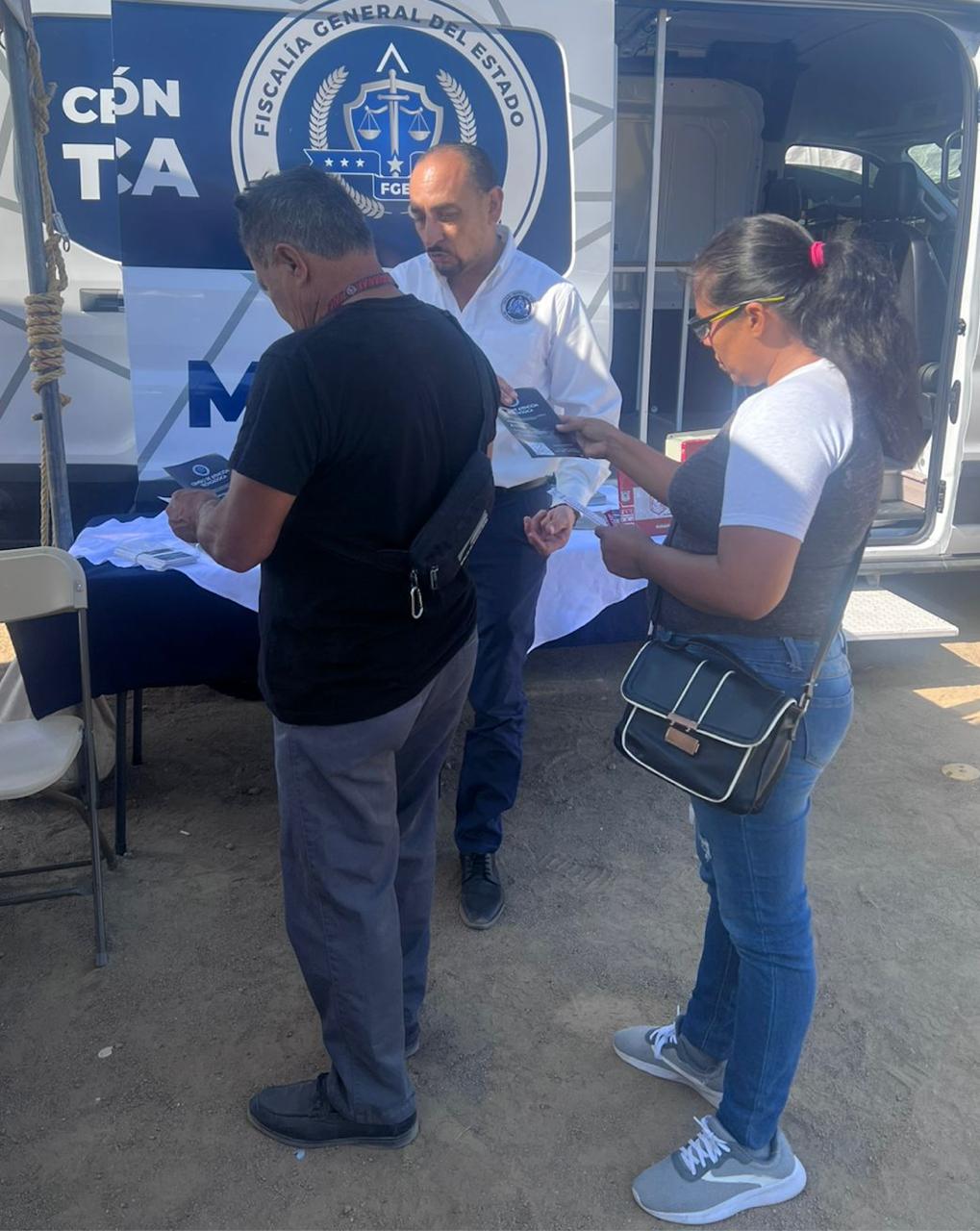 TIJUANA, BAJA CALIFORNIA. - En cumplimiento a la instrucción de la Fiscal General del Estado, Dra. Ma. Elena Andrade Ramírez, de fortalecer la atención ciudadana en todo el territorio estatal, la Fiscalía General del Estado (FGE) continúa con el desarrollo del programa “Fiscal Enlace Contigo”, cuyo objetivo es acercar los servicios de procuración de justicia a la población, especialmente a quienes habitan en zonas periféricas o de difícil acceso.