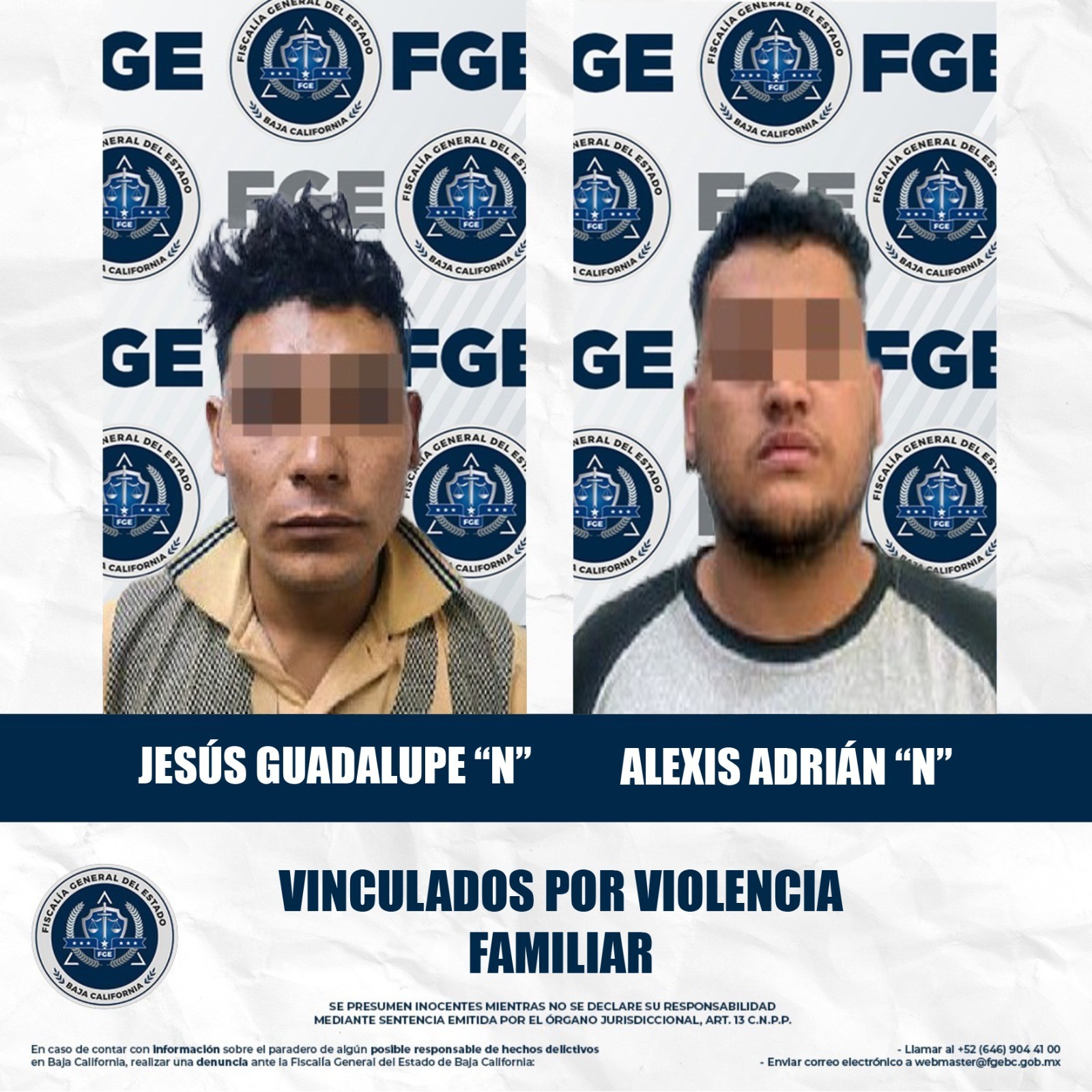 MEXICALI, BAJA CALIFORNIA. - La Fiscalía Regional de Mexicali, a través de las Unidades de Investigación de Delitos Foránea Ciudad Morelos y Detenidos Poniente, obtuvo la vinculación a proceso de dos hombres imputados por el delito de violencia familiar.