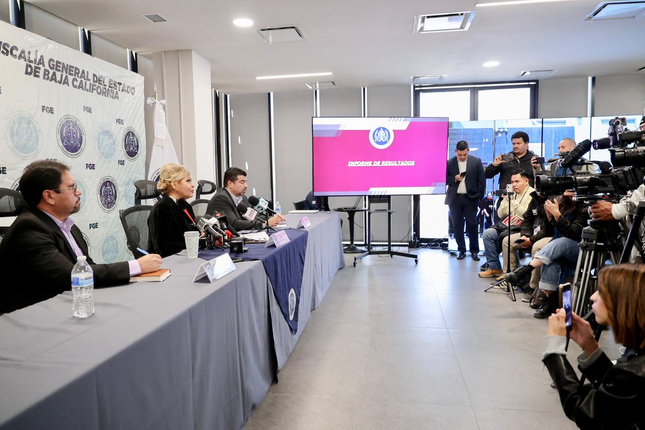 TIJUANA, BAJA CALIFORNIA. - La Fiscal General del Estado, Dra. Ma. Elena Andrade Ramírez, encabezó este día una conferencia de prensa en Tijuana, con el propósito de mantener un diálogo abierto y transparente con los medios de comunicación, así como presentar avances relevantes en materia de procuración de justicia. Durante su mensaje, destacó los resultados obtenidos en diversas investigaciones y refrendó el compromiso de la institución con la ciudadanía de Baja California.