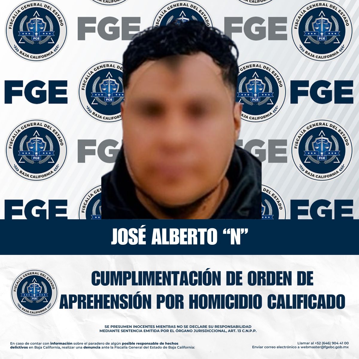 TIJUANA, BAJA CALIFORNIA. - La Fiscalía General del Estado, bajo la dirección de la Dra. Ma. Elena Andrade Ramírez, dio a conocer avances relevantes en la investigación de los hechos ocurridos en el estacionamiento del bar “La Cueva del Peludo”. Como resultado de las labores de inteligencia, el 5 de noviembre de 2025 agentes de investigación cumplimentaron una orden de aprehensión en contra de José Alberto “N” por el delito de homicidio calificado.