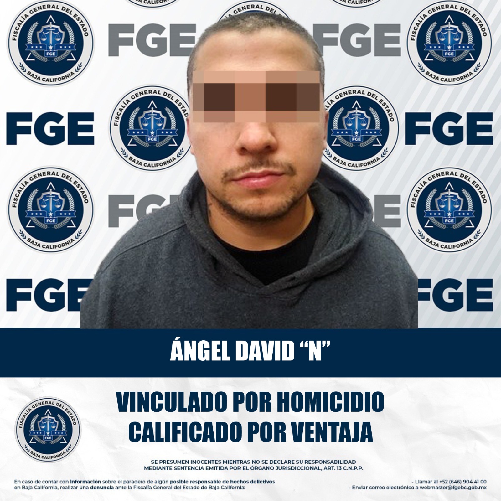 MEXICALI, BAJA CALIFORNIA. - La Fiscalía General del Estado, por conducto de la Fiscalía Especializada en Delitos contra la Vida, obtuvo la vinculación a proceso de Ángel David “N”, por su presunta responsabilidad en el homicidio de un hombre ocurrido en abril de 2022.