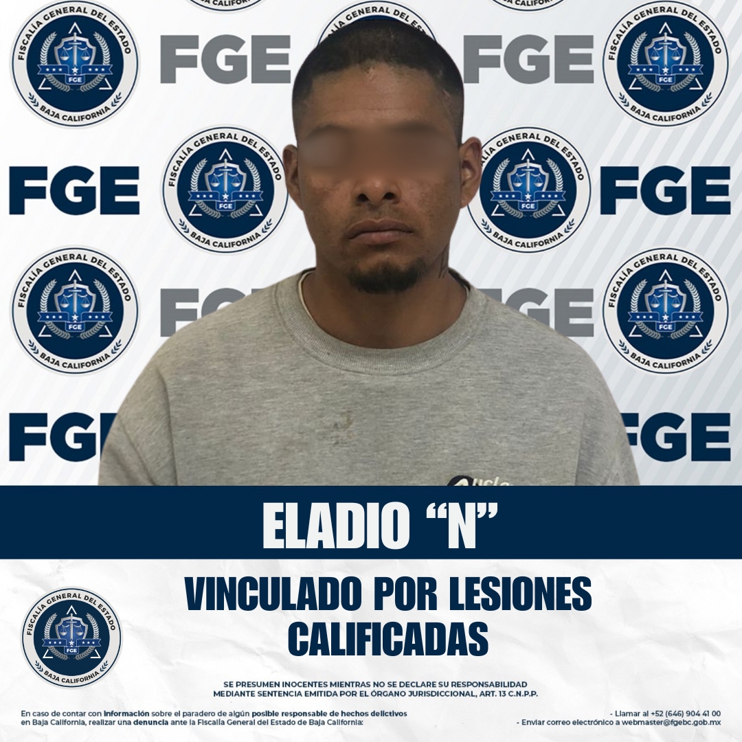 SAN QUINTÍN, BAJA CALIFORNIA. - La Fiscalía Regional de San Quintín, a través de la Unidad de Investigación, obtuvo la vinculación a proceso de Eladio “N” por el delito de lesiones calificadas.