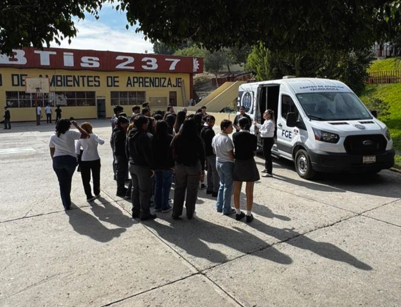TIJUANA, BAJA CALIFORNIA. - Por instrucciones de la Fiscal General del Estado, Dra. Ma. Elena Andrade Ramírez, se llevó a cabo el taller “Conociendo la Fiscalía” con estudiantes de preparatoria del DGETI 237, ubicado en la colonia Mariano Matamoros. El objetivo fue brindar a los jóvenes información clara y accesible sobre la importancia de la convivencia pacífica dentro y fuera del aula, así como guiarlos sobre cómo presentar una denuncia y compartir estos conocimientos con sus círculos cercanos.