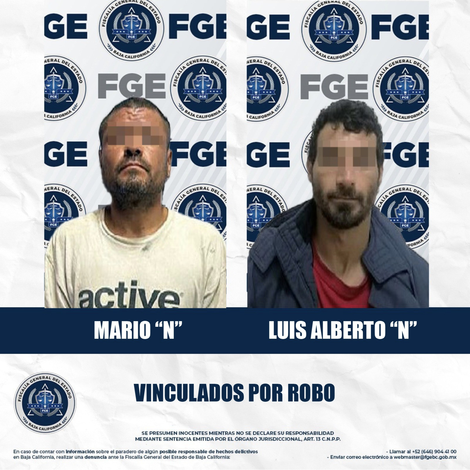 MEXICALI, BAJA CALIFORNIA. - La Fiscalía Regional de Mexicali obtuvo la vinculación a proceso de dos hombres por su presunta participación en los delitos de robo con violencia equipada y robo calificado a lugar cerrado, respectivamente. Las resoluciones fueron dictadas en audiencias independientes ante un Juez de Control.