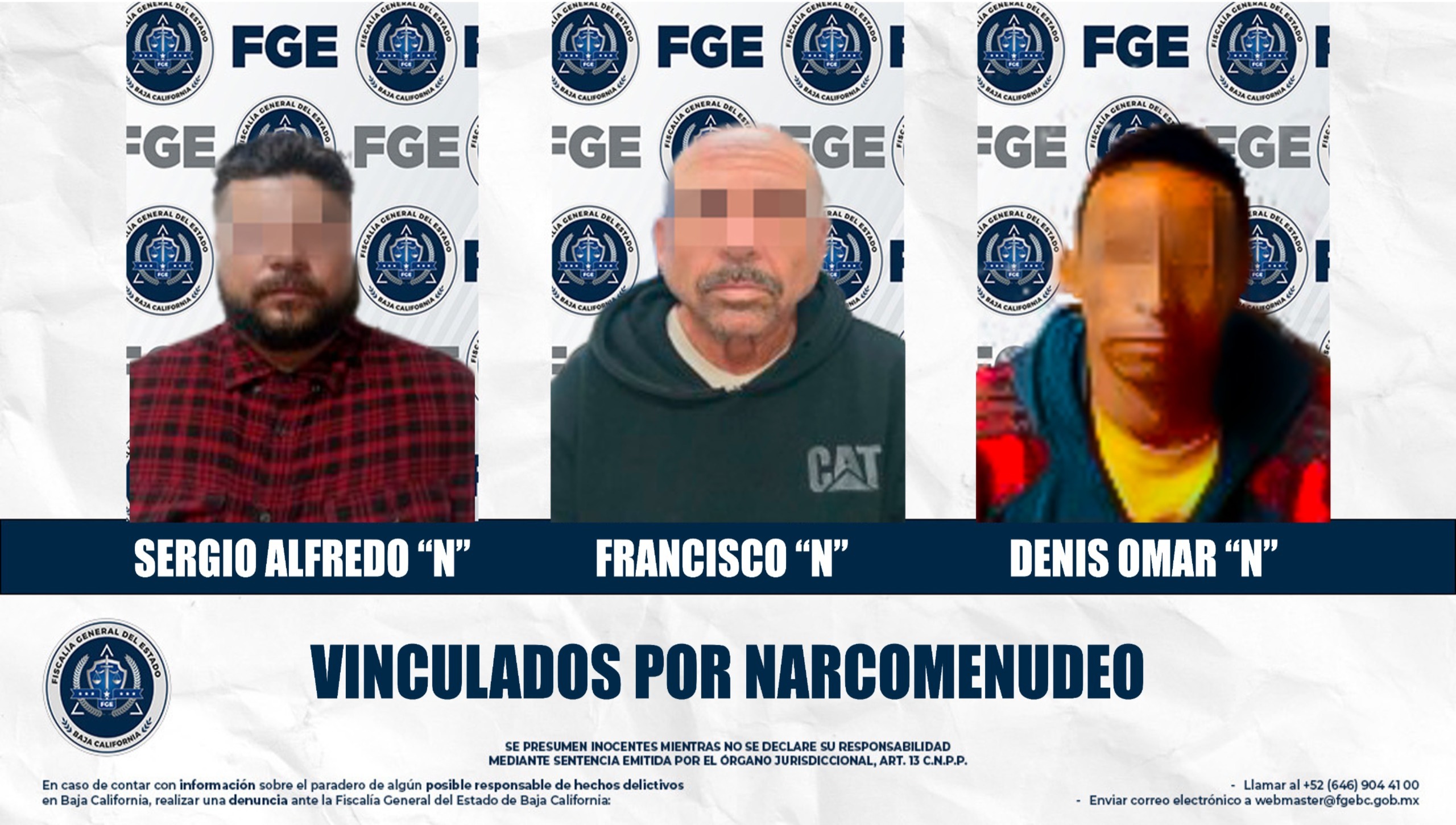 MEXICALI, BAJA CALIFORNIA. - La Fiscalía General del Estado (FGE), a través de la Fiscalía Especializada en Narcomenudeo, continúa trabajando para mantener las calles de Mexicali más seguras y libres de drogas. Como parte de estas acciones, tres personas fueron vinculadas a proceso tras ser detenidas en distintos puntos de la ciudad con presuntas dosis de metanfetamina.