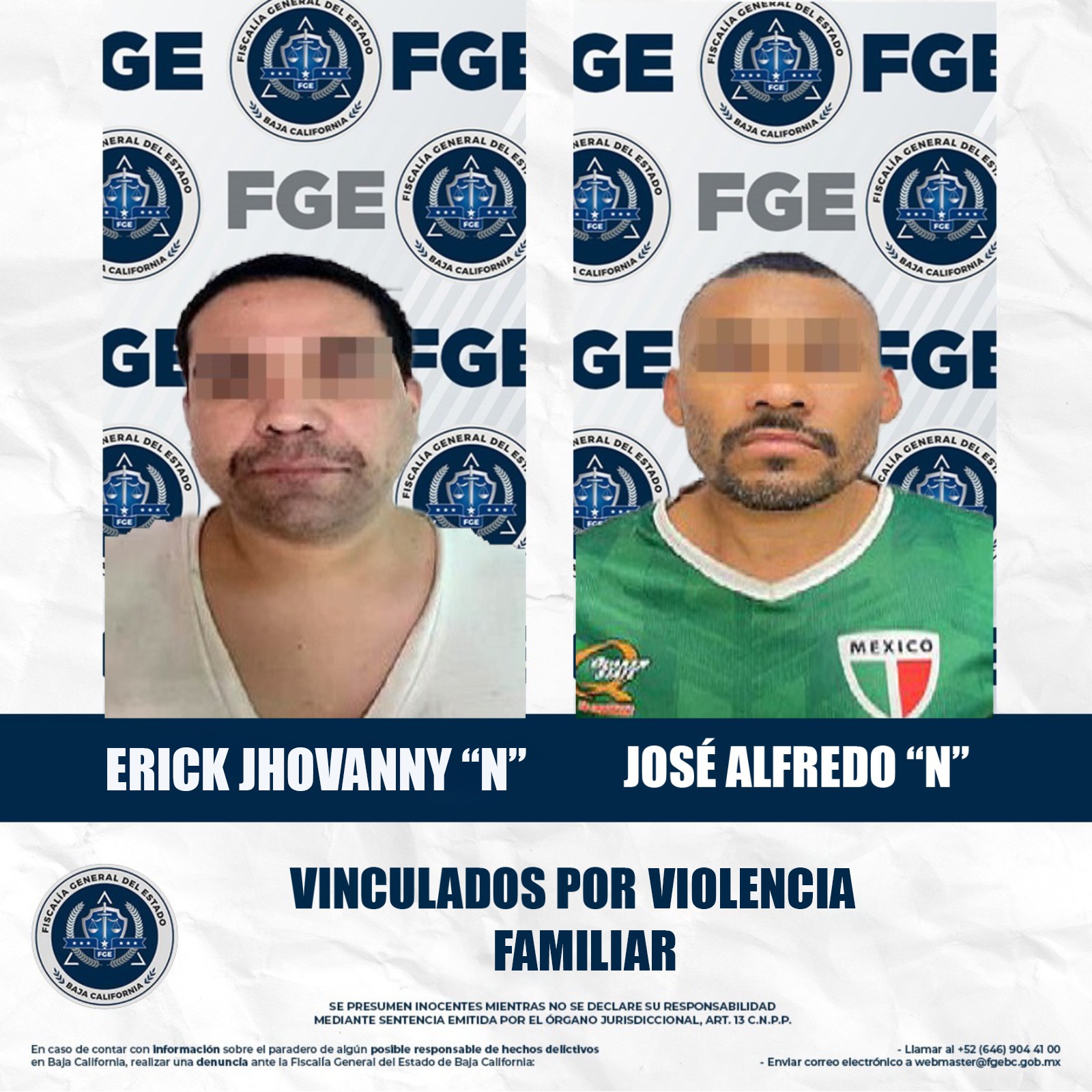 MEXICALI, BAJA CALIFORNIA. - Dos hombres acusados de agredir a familiares, fueron vinculados a proceso con base a los elementos de prueba presentados por la Fiscalía Regional de Mexicali, a través de las Unidades de Investigación con Detenidos Oriente y Foránea de Guadalupe Victoria.