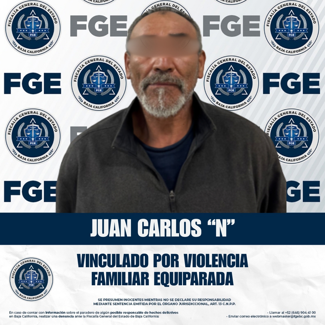 ENSENADA, BAJA CALIFORNIA. - La Fiscalía Regional de Ensenada, a través de la Unidad de Investigación con Detenido, obtuvo la vinculación a proceso de Juan Carlos “N” por el delito de violencia familiar equiparada, tras su detención en el fraccionamiento Único, en el poblado de Maneadero.