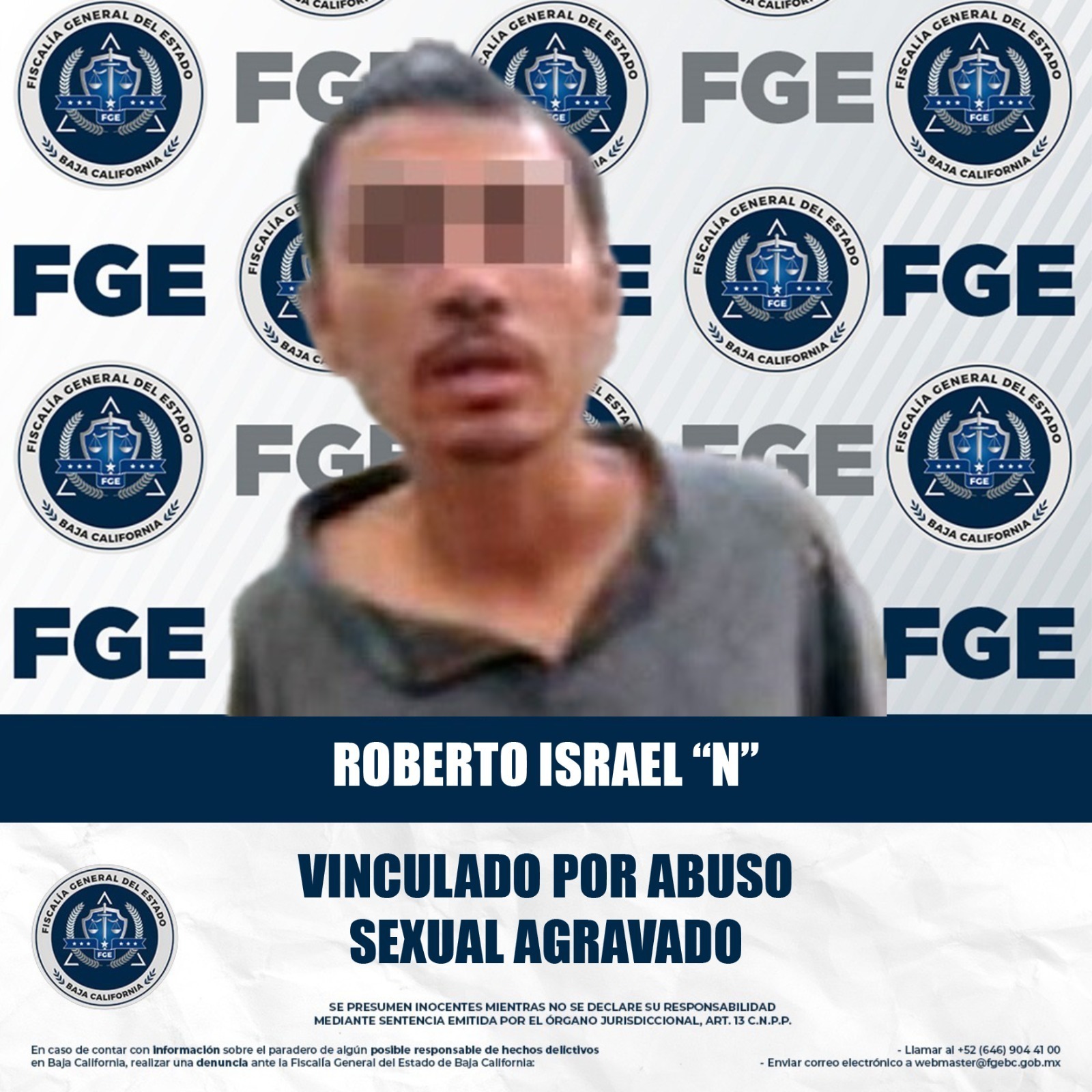 MEXICALI, BAJA CALIFORNIA. - La Fiscalía Regional de Mexicali, a través de la Unidad de Investigación de Delitos con Detenidos Poniente, obtuvo la vinculación a proceso de Roberto Israel “N”, por su presunta participación en el delito de abuso sexual agravado.