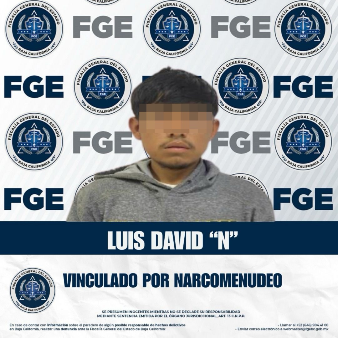SAN QUINTÍN, BAJA CALIFORNIA. - La Fiscalía General del Estado, con base en los datos de prueba aportados por el agente del Ministerio Público adscrito a la Fiscalía Especializada en Narcomenudeo, logró la vinculación a proceso de Luis David “N”, detenido en San Quintín en posesión de metanfetamina.