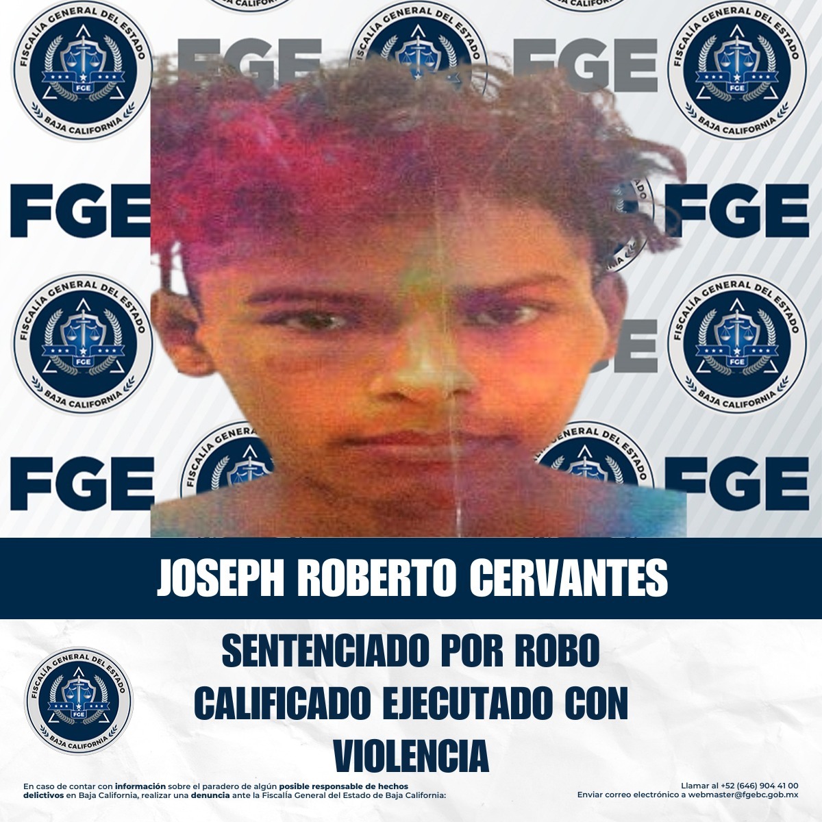 TIJUANA, BAJA CALIFORNIA. - La Unidad de Investigación de Robos, zona Mariano Matamoros, adscrita a la Fiscalía Regional de Tijuana, obtuvo la sentencia de 7 años y 4 meses en contra de Joseph Roberto Cervantes, alias “El Rebook”, por el delito de robo calificado a establecimiento comercial abierto al público, ejecutado con violencia.