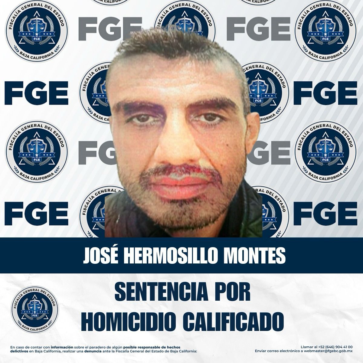 TIJUANA, BAJA CALIFORNIA. - La Fiscalía General del Estado, a través de la Fiscalía Especializada en Delitos Contra la Vida, obtuvo una sentencia condenatoria de 25 años de prisión en contra de José Hermosillo Montes, por su responsabilidad en el delito de homicidio calificado.